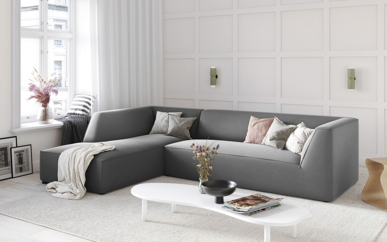 Coltar stanga 4 locuri, Ruby, Micadoni Home, BL, 273x180x69 cm, catifea, gri