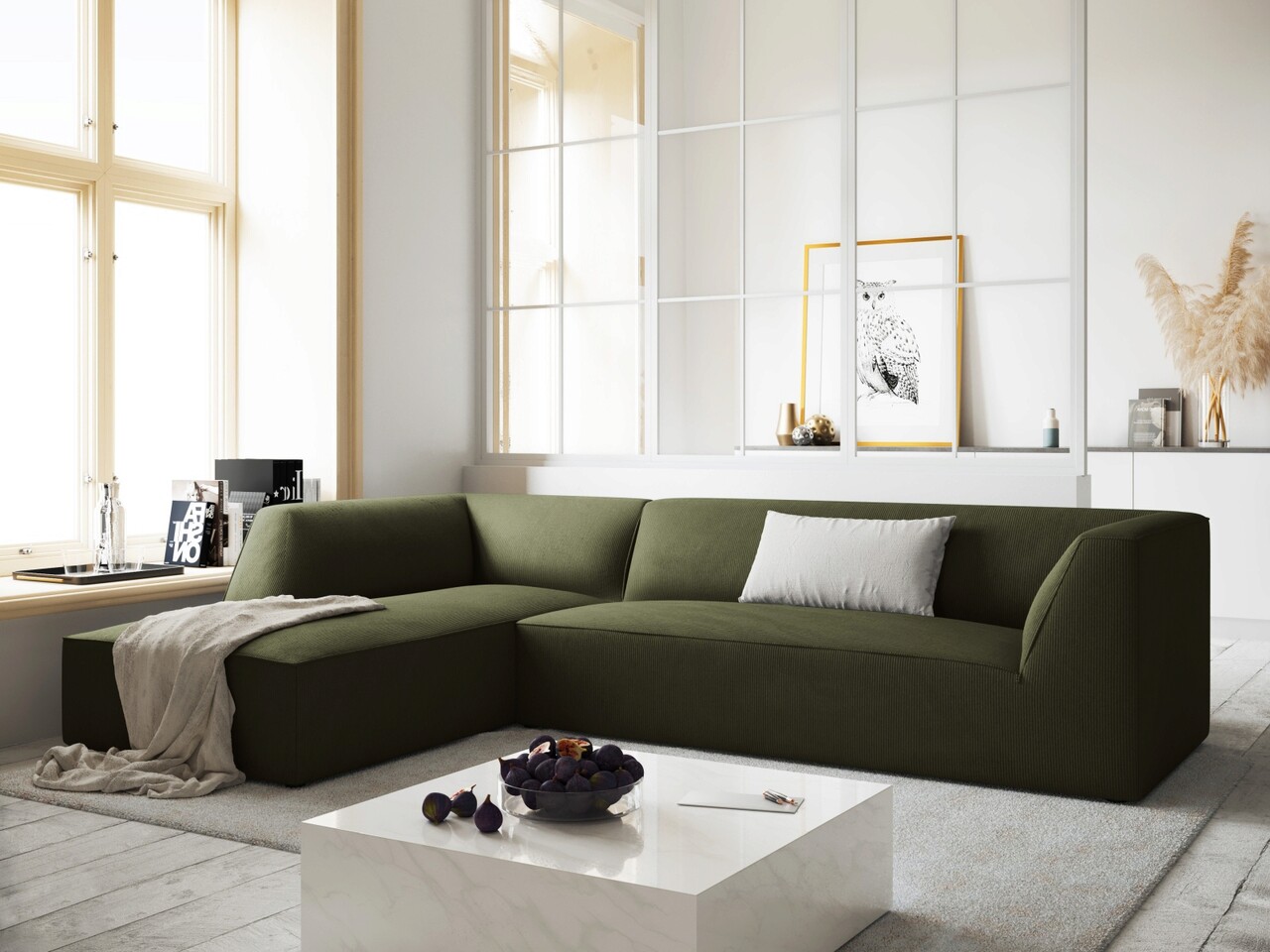 Coltar stanga 4 locuri, Ruby, Micadoni Home, BL, 273x180x69 cm, velur, verde