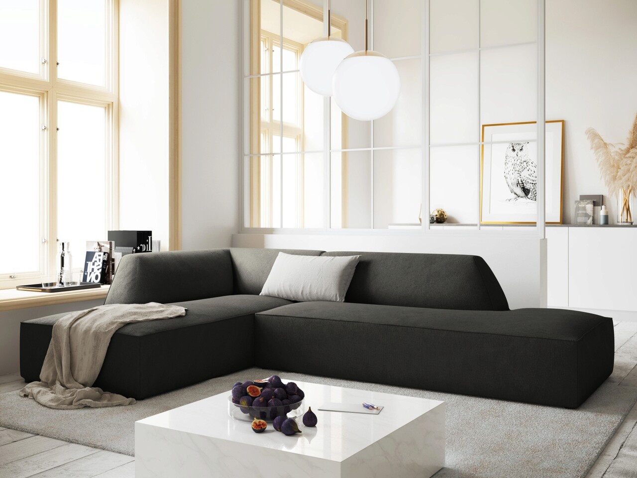 Coltar stanga 4 locuri, Ruby, Micadoni Home, BL, fara cotiera, 273x180x69 cm, velur, gri inchis