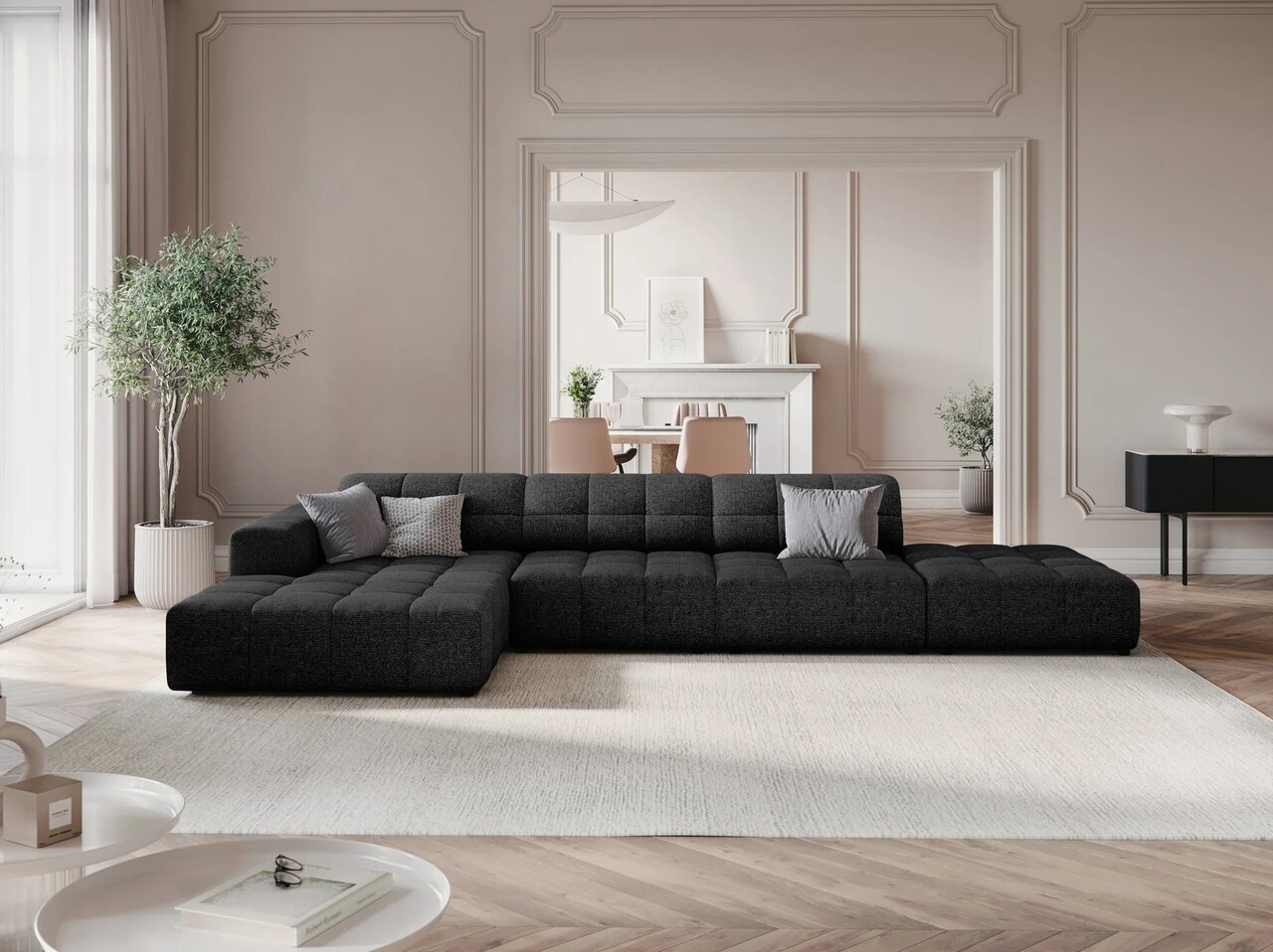 Coltar stanga 5 locuri, Jennifer-140, Micadoni Home, 341x166x70 cm, tesatura chenille din poliester, negru