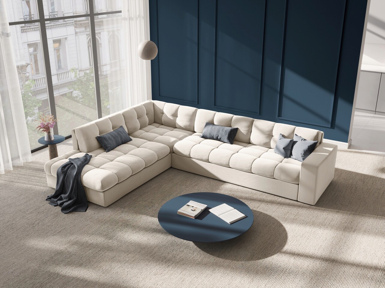 Coltar stanga 5 locuri, Justin, Micadoni Home, BL, 236x199x72 cm, catifea, bej deschis