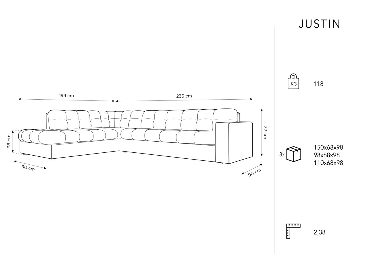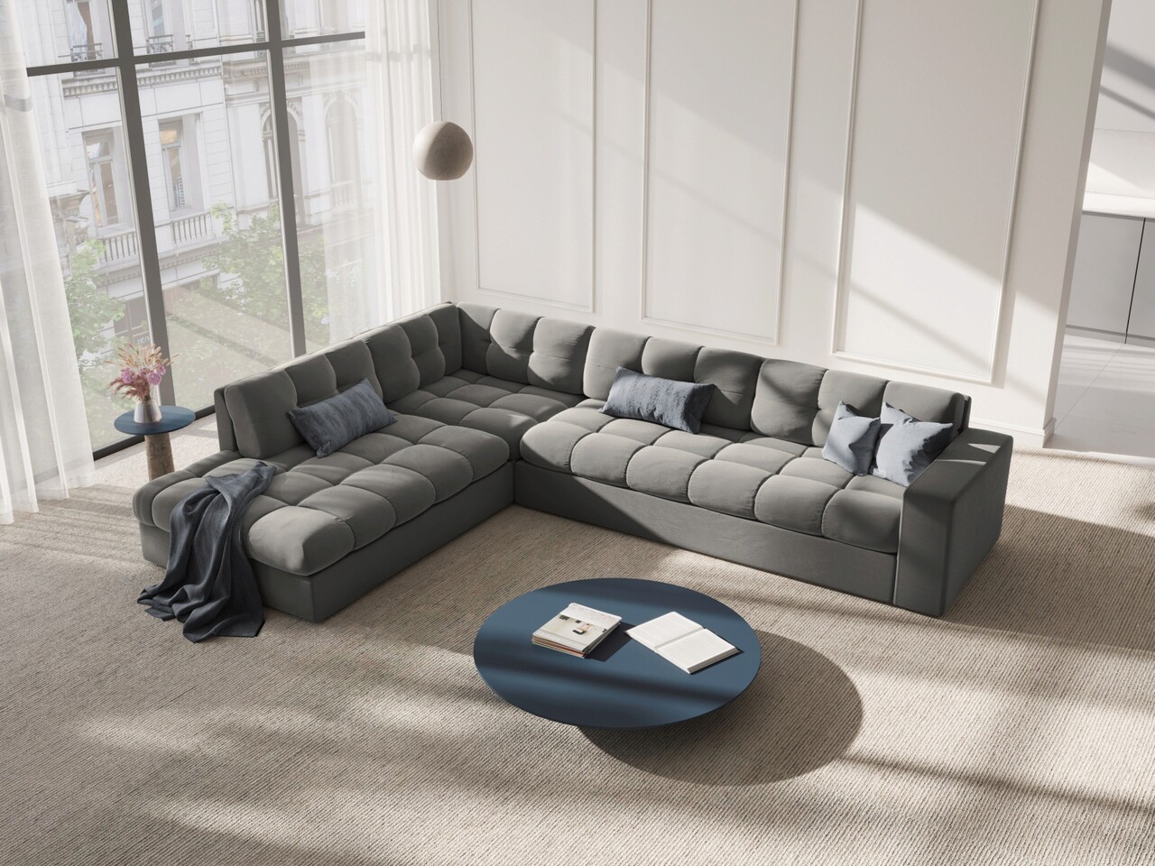 Coltar stanga 5 locuri, Justin, Micadoni Home, BL, 236x199x72 cm, catifea, gri deschis