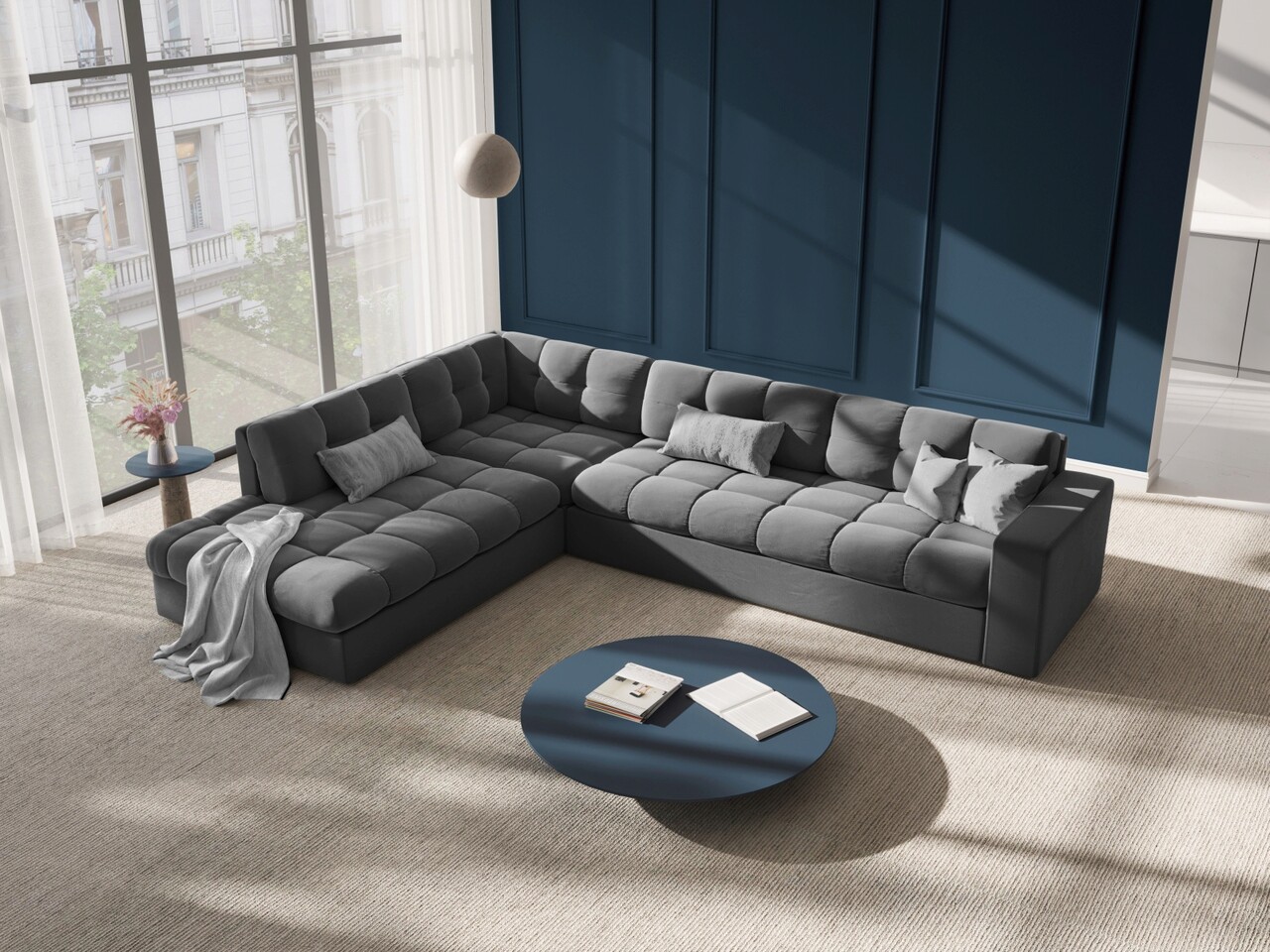 Coltar stanga 5 locuri, Justin, Micadoni Home, BL, 236x199x72 cm, catifea, gri