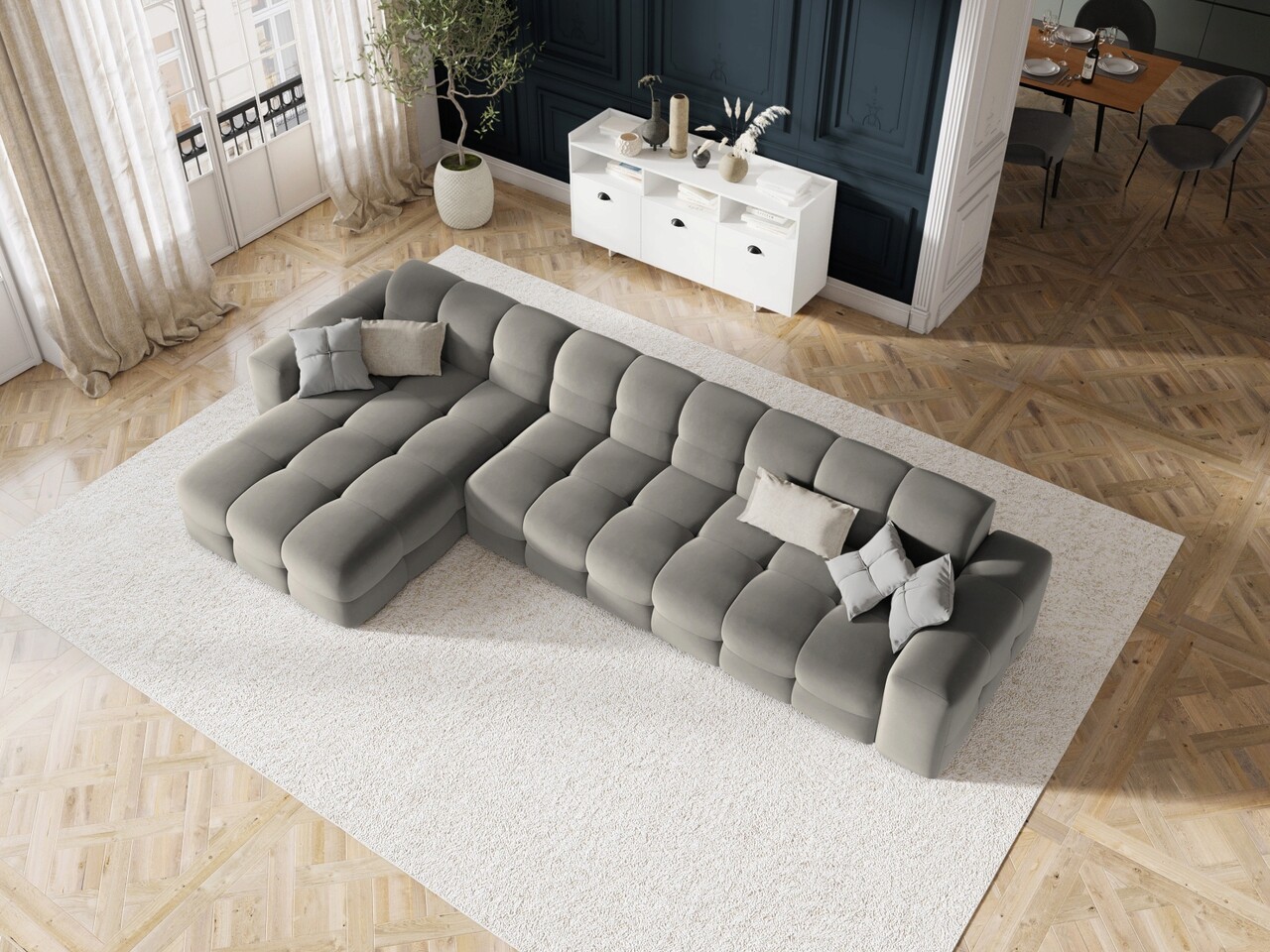 Coltar stanga 5 locuri, Kendal, Micadoni Home, BL, 357x173x79 cm, catifea, gri inchis