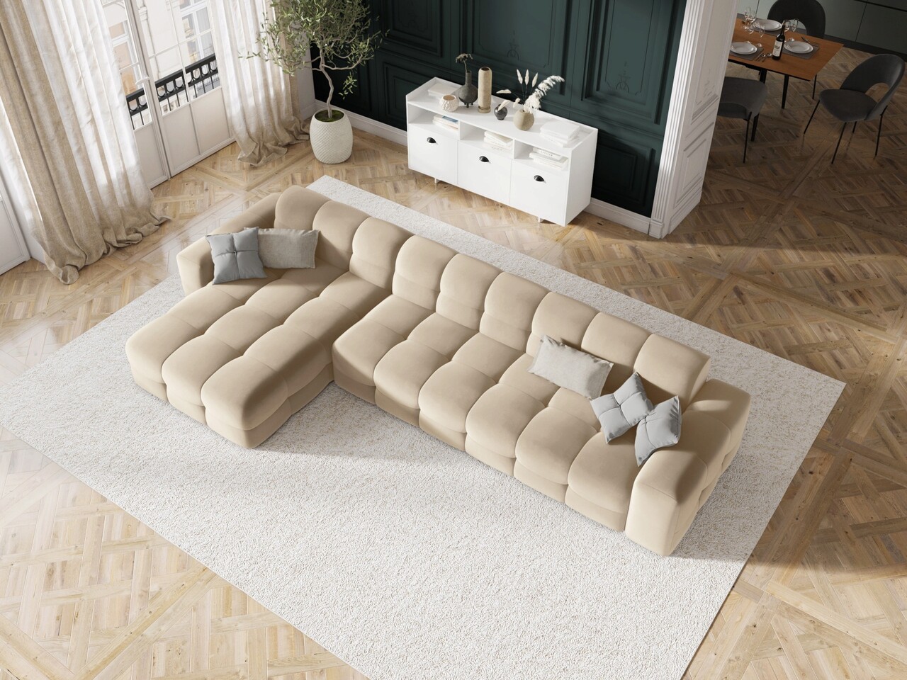 Coltar stanga 5 locuri, Kendal, Micadoni Home, BL, 357x173x79 cm, catifea, bej deschis