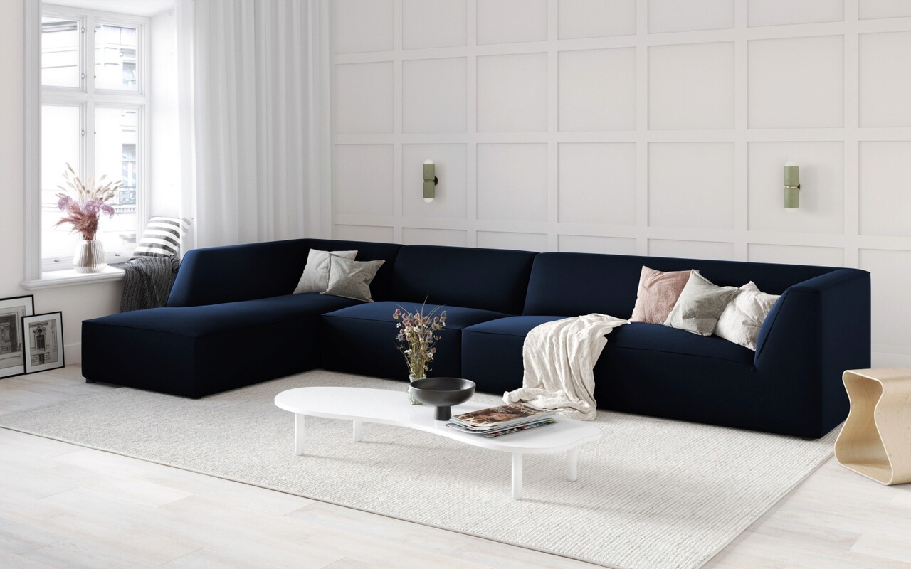 Coltar stanga 5 locuri, Ruby, Micadoni Home, BL, 366x180x69 cm, catifea, albastru regal