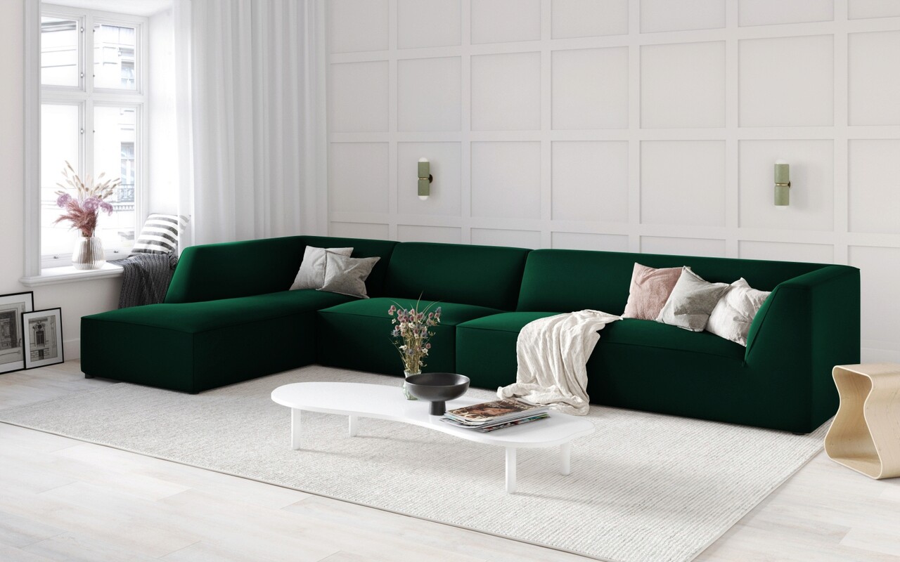 Coltar stanga 5 locuri, Ruby, Micadoni Home, BL, 366x180x69 cm, catifea, verde bottle