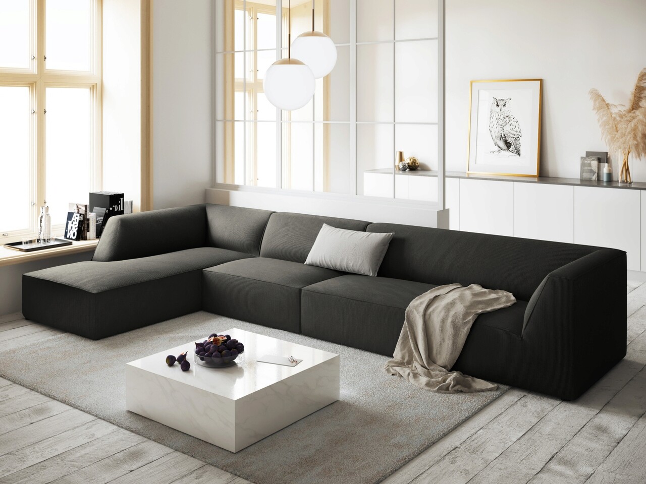 Coltar stanga 5 locuri, Ruby, Micadoni Home, BL, 366x180x69 cm, velur, gri inchis