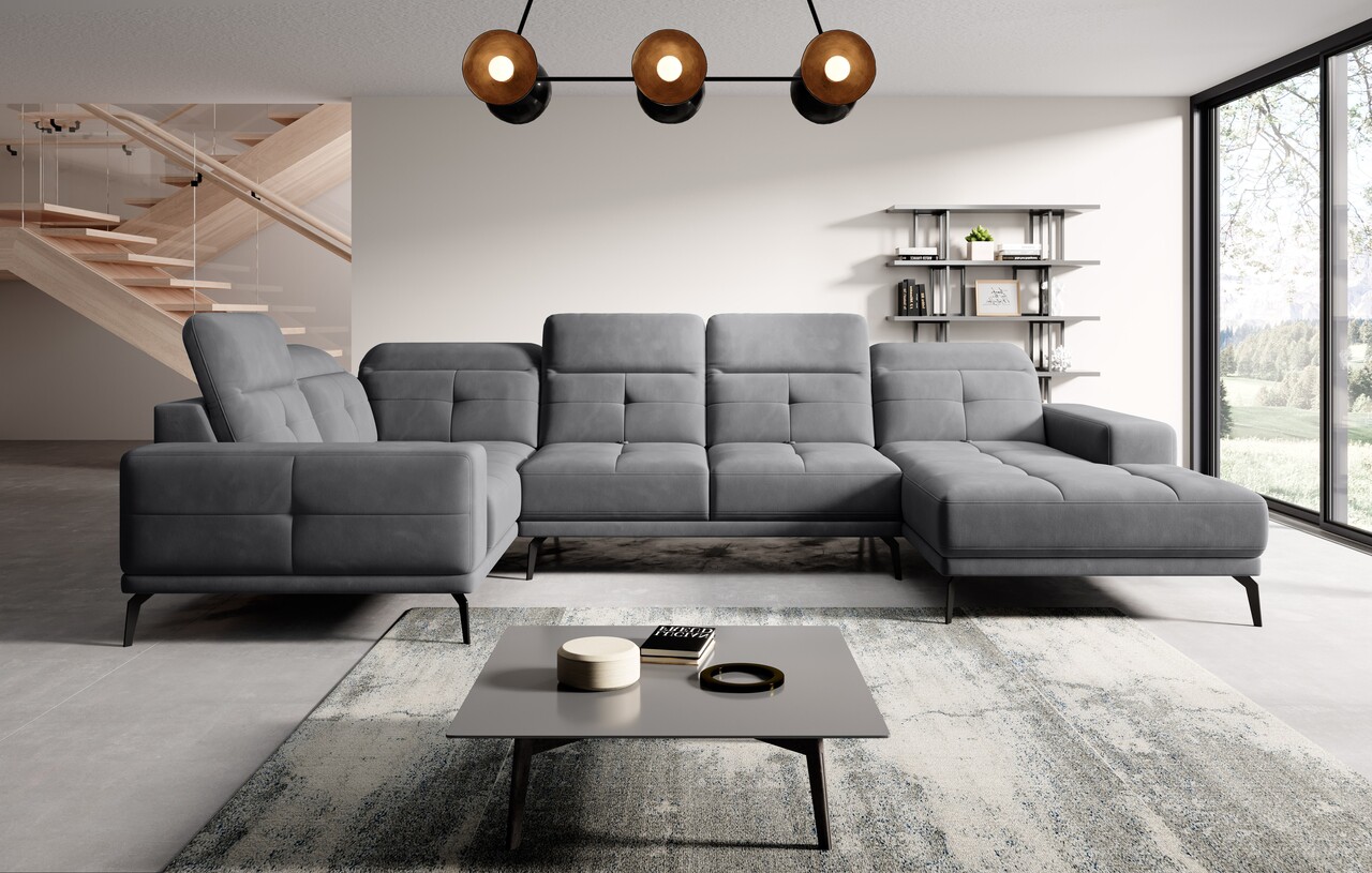 Coltar stanga 6 locuri ELTAP, LT-06SO, Neviro, 350x201x77 cm, lemn/poliester, gri inchis