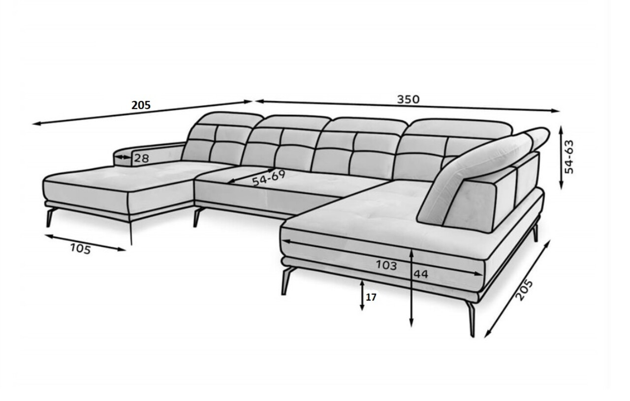Coltar stanga 6 locuri ELTAP, LT-100PO, Bretan, 350x205x107 cm, lemn/poliester, turcoaz