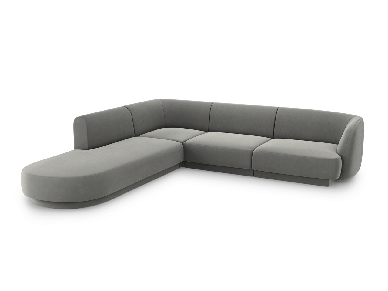 Coltar stanga 6 locuri, Miley, Micadoni Home, BL, forma rotunjita, 258x248x74 cm, catifea, gri deschis