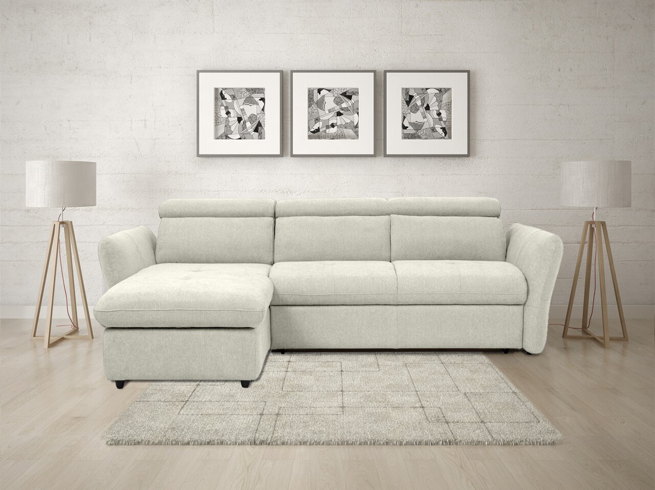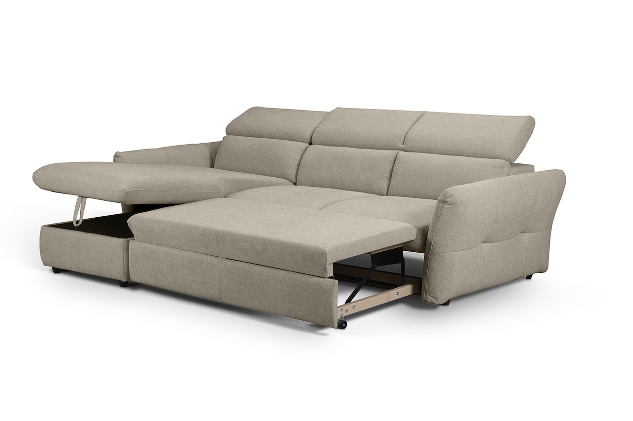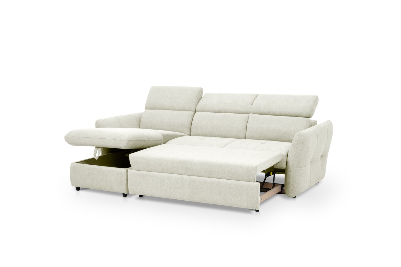 Coltar stanga extensibil, Lyon, 172x240x99 cm, lada de depozitare, Bej