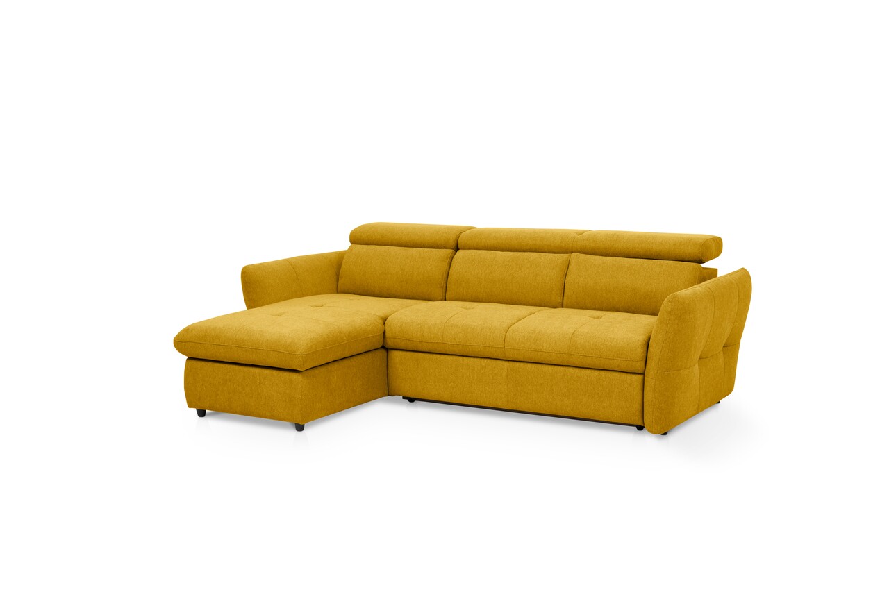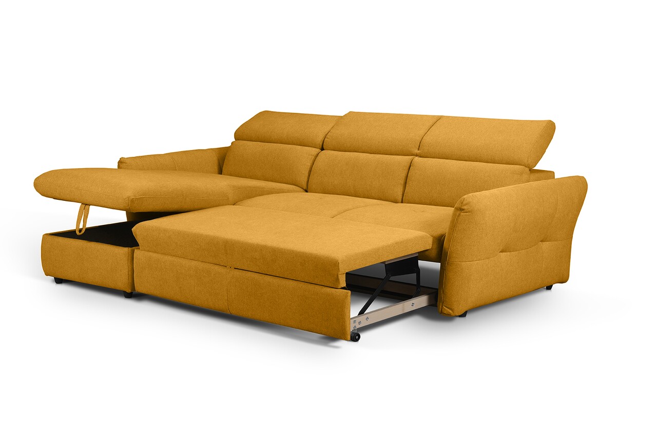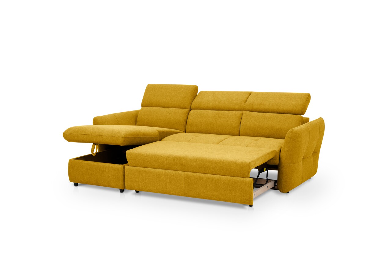 Coltar stanga extensibil, Lyon, 172x240x99 cm, lada de depozitare, Mustar