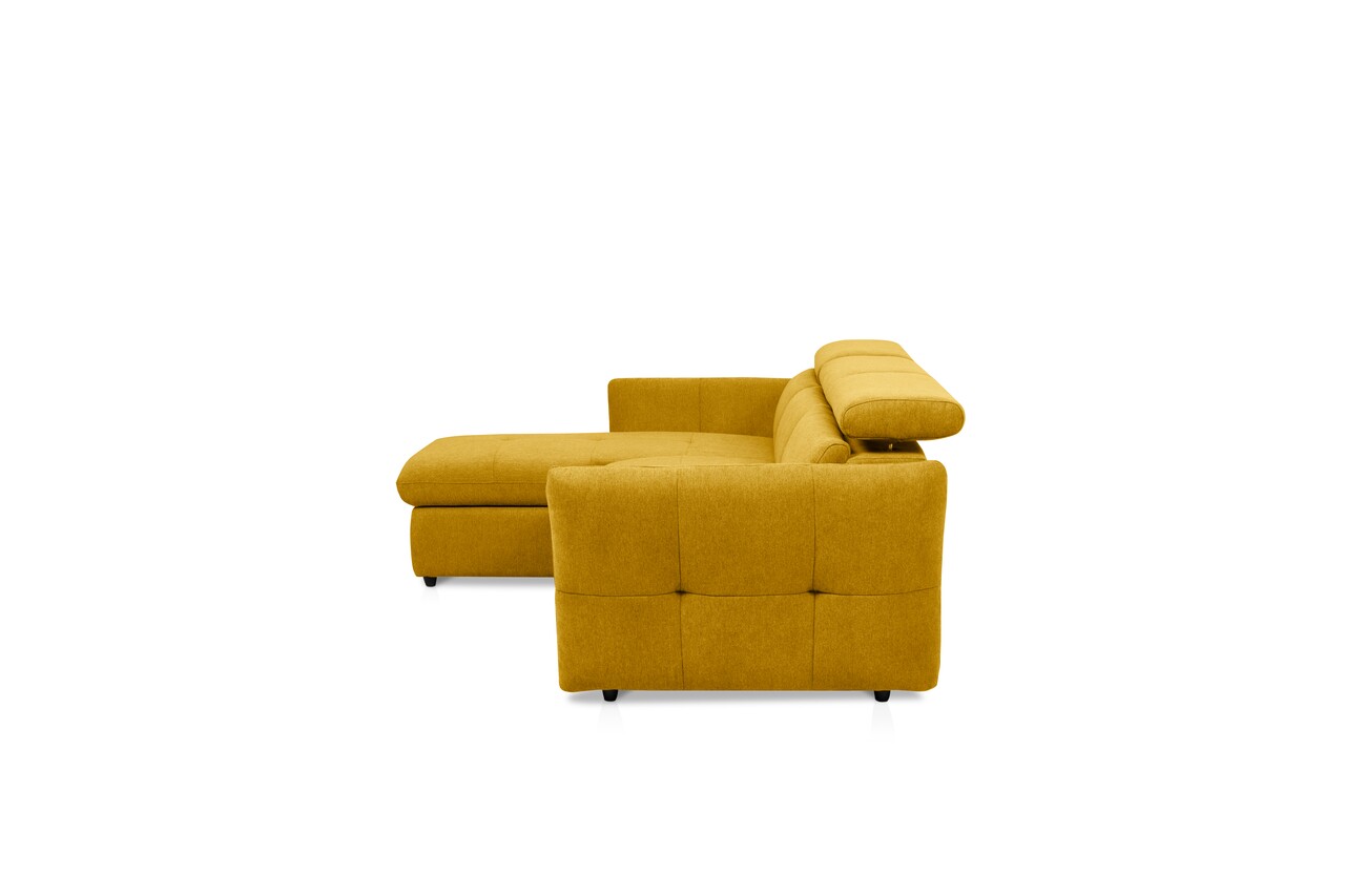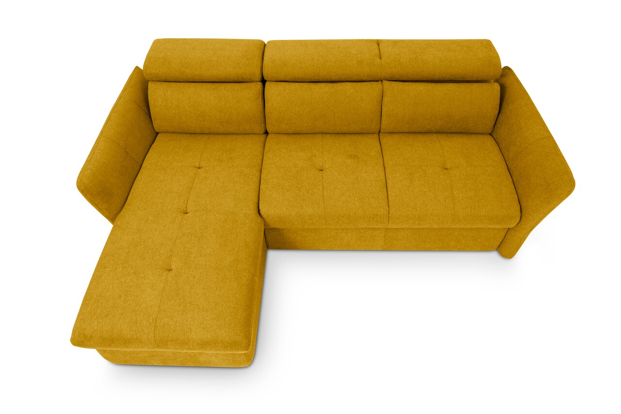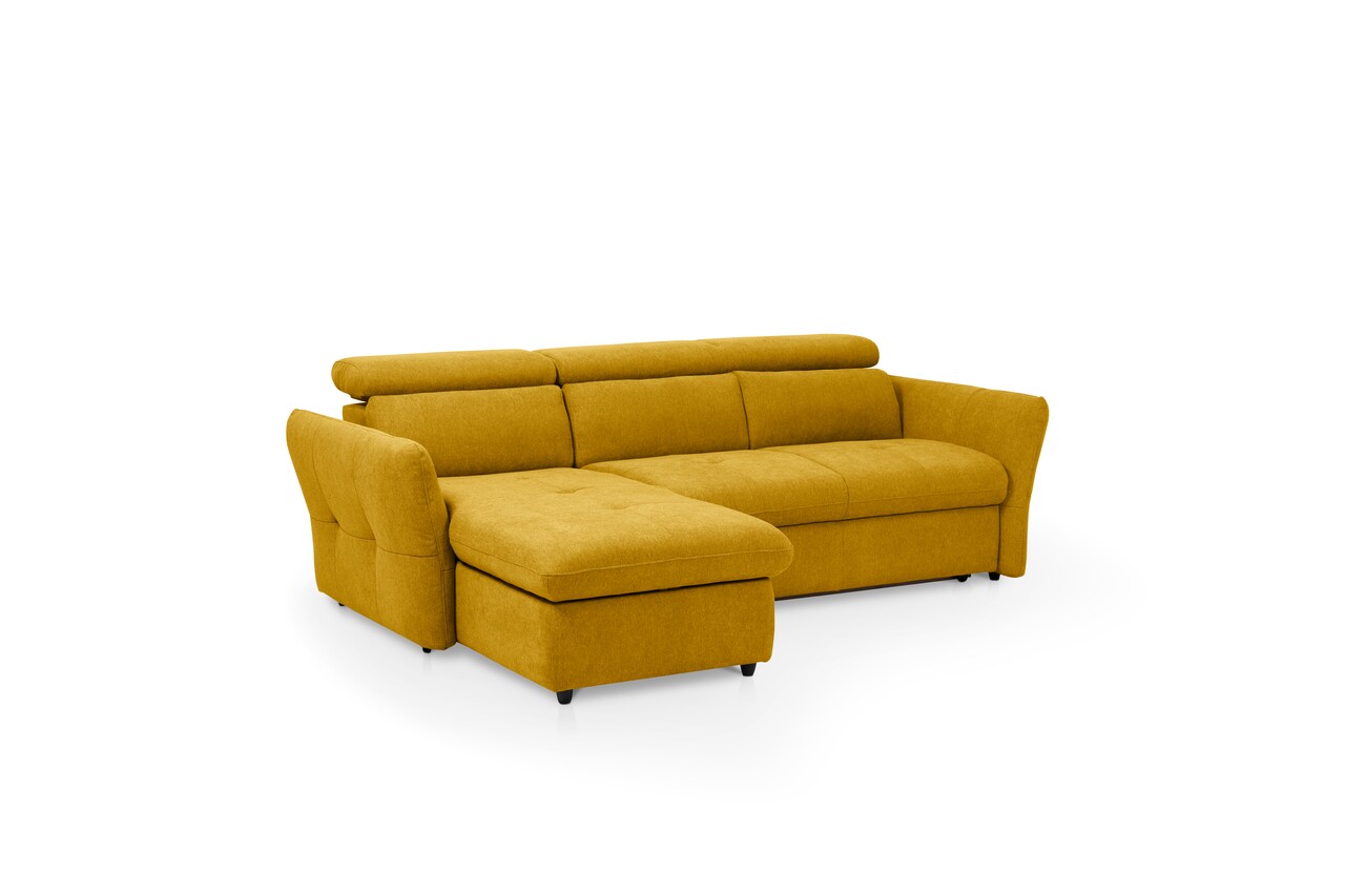 Coltar stanga extensibil, Lyon, 172x240x99 cm, lada de depozitare, Mustar