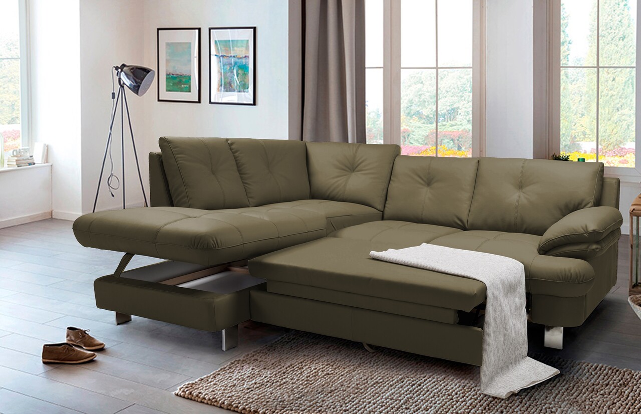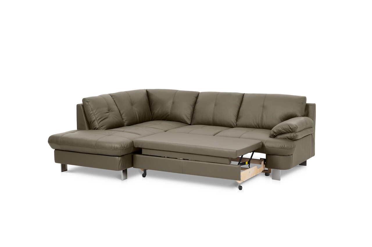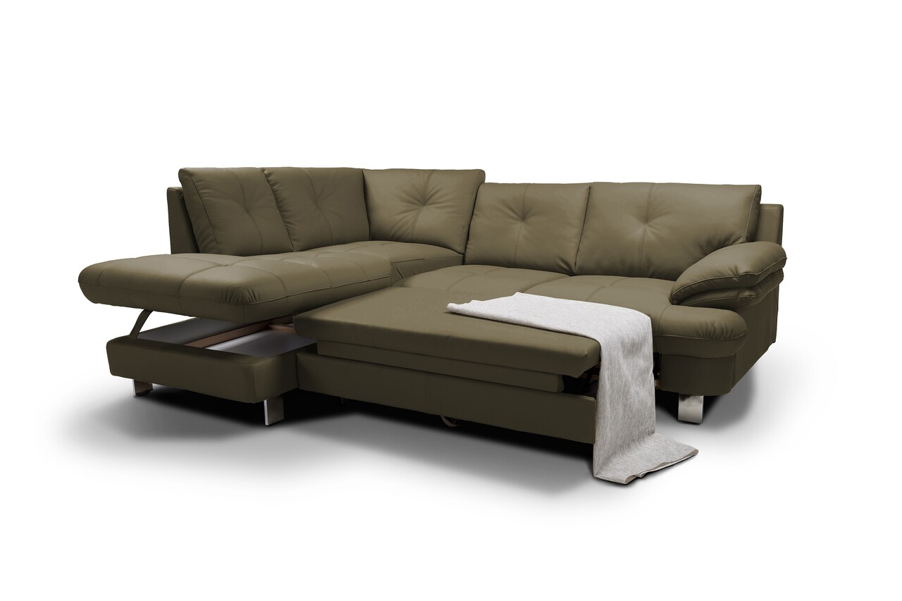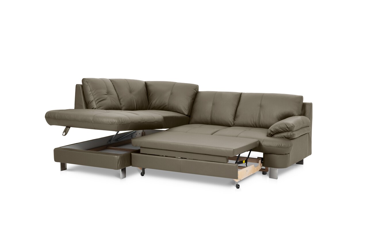 Coltar stanga extensibil, Ranger, 185x247x82 cm, piele naturala cu piele ecologica, lada de depozitare, Stone