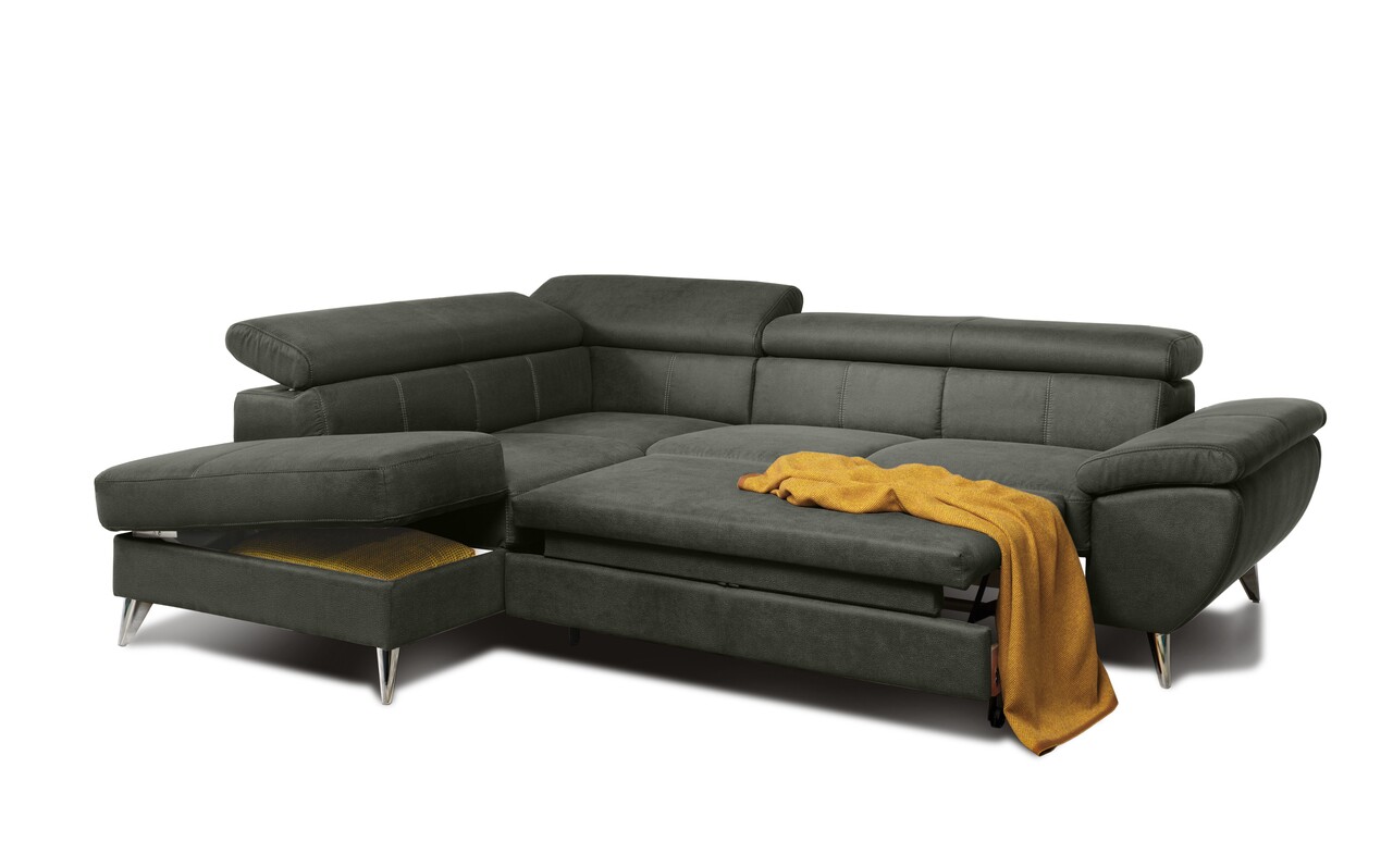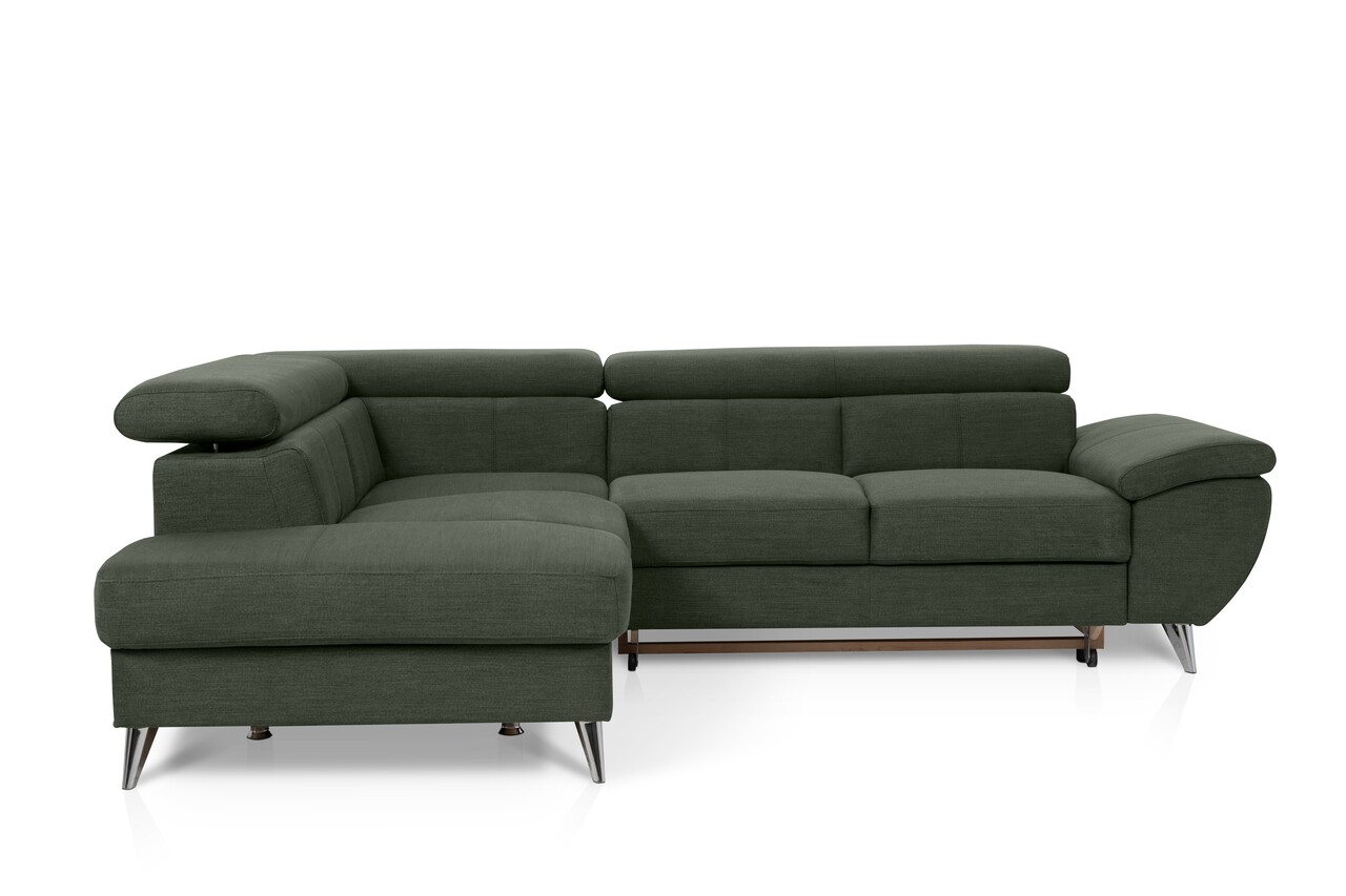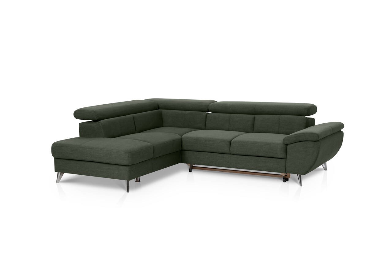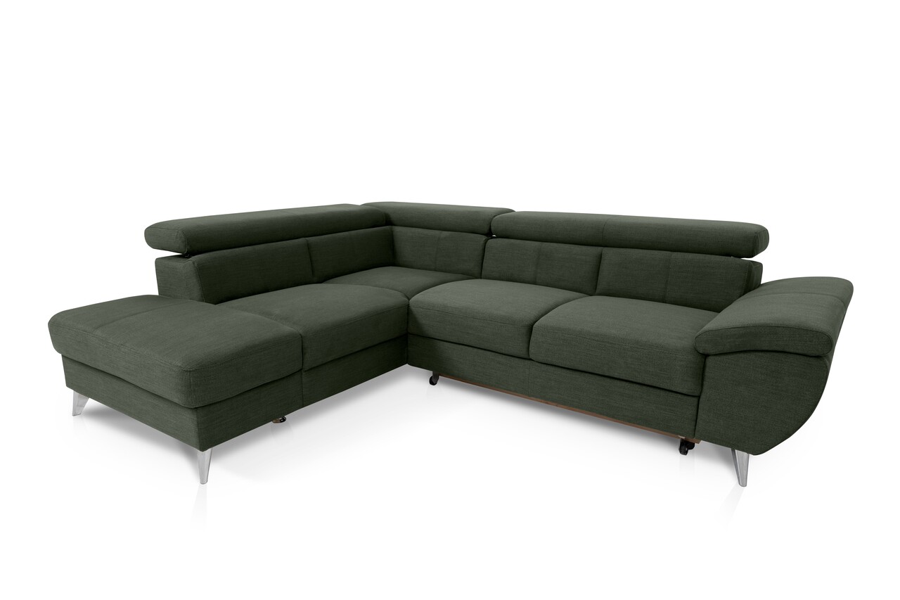 Coltar stanga extensibil, Tokyo, 207x260x93 cm, lada de depozitare, Verde