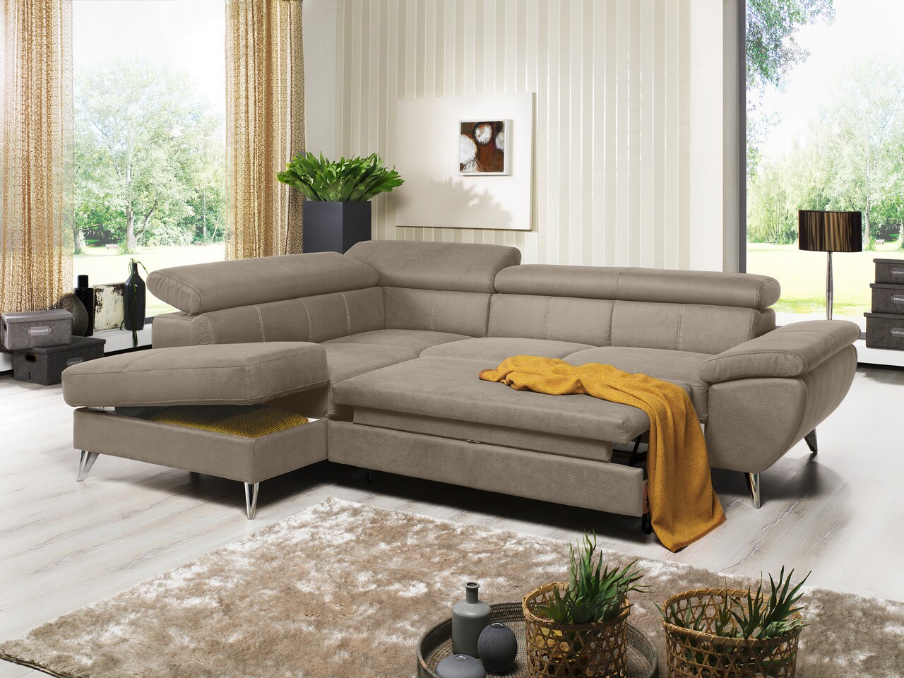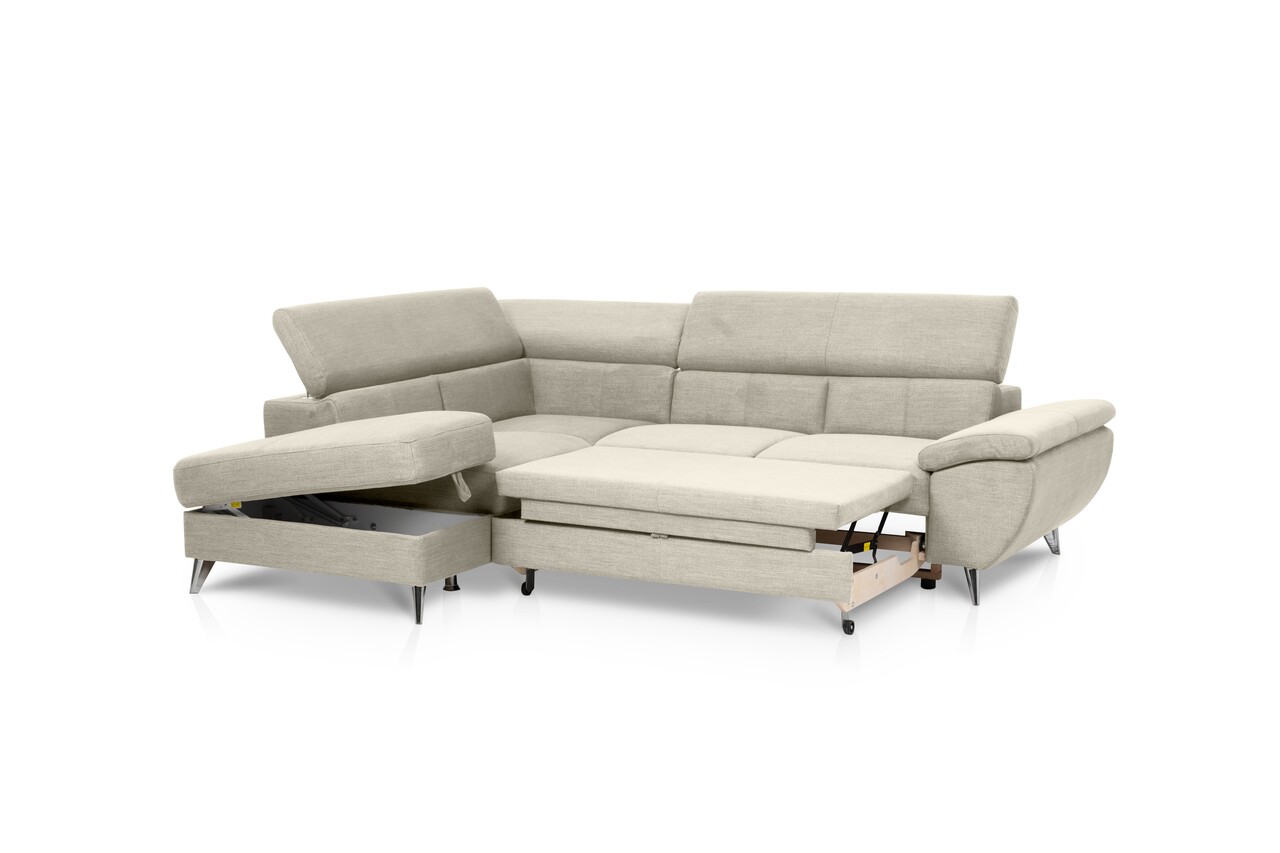 Coltar stanga extensibil, Tokyo, 207x260x93 cm, lada de depozitare, Bej