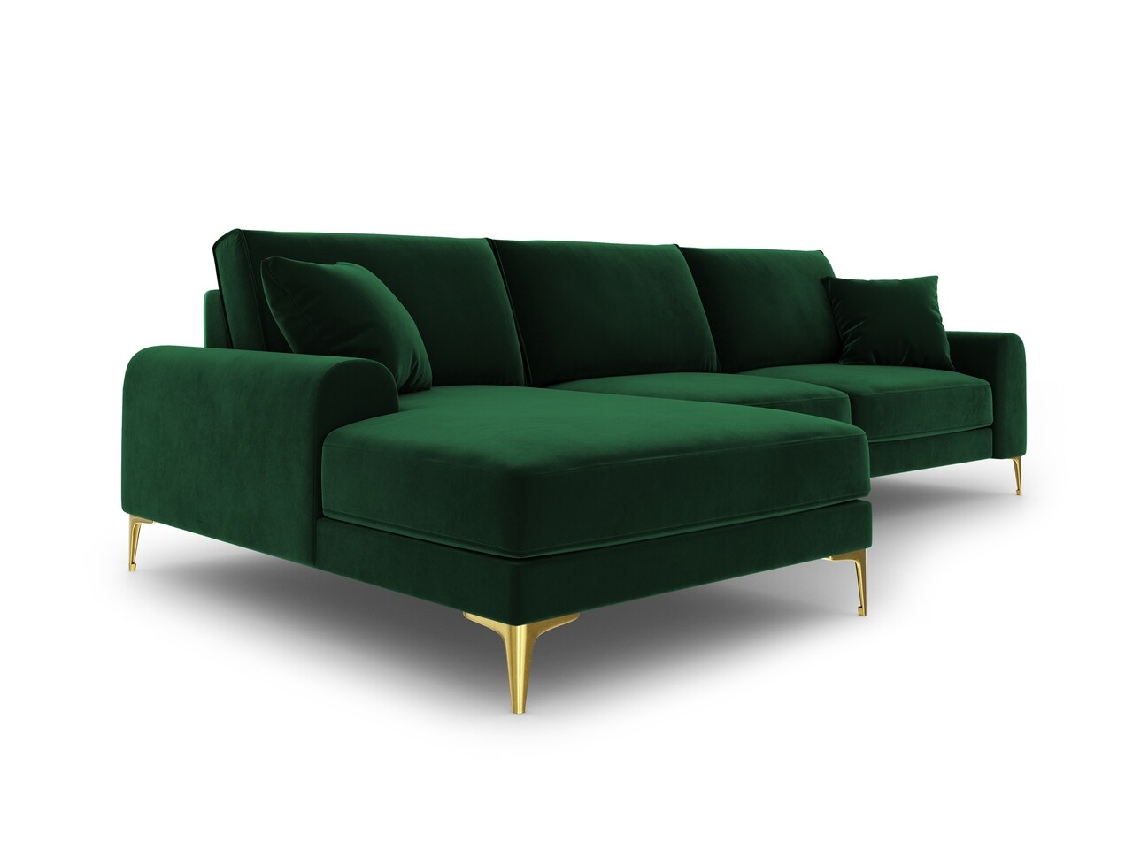 Coltar stanga, Madara, Mazzini Sofas, 5 locuri, gold legs, 254x182x90 cm, catifea, verde bottle