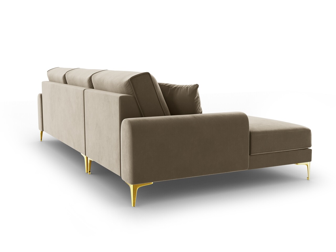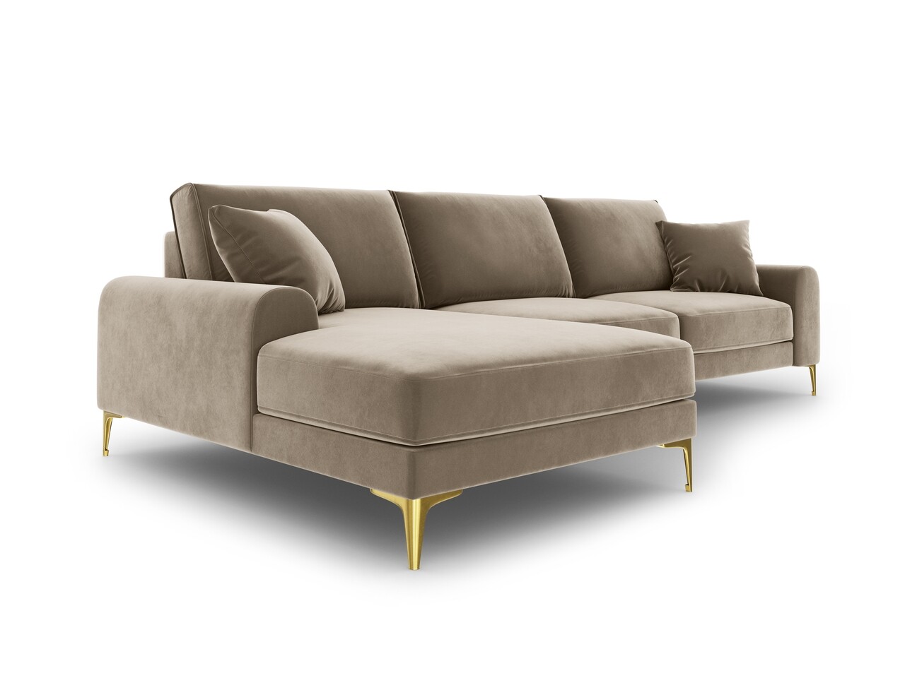 Coltar stanga, Madara, Mazzini Sofas, 5 locuri, gold legs, 254x182x90 cm, catifea, bej