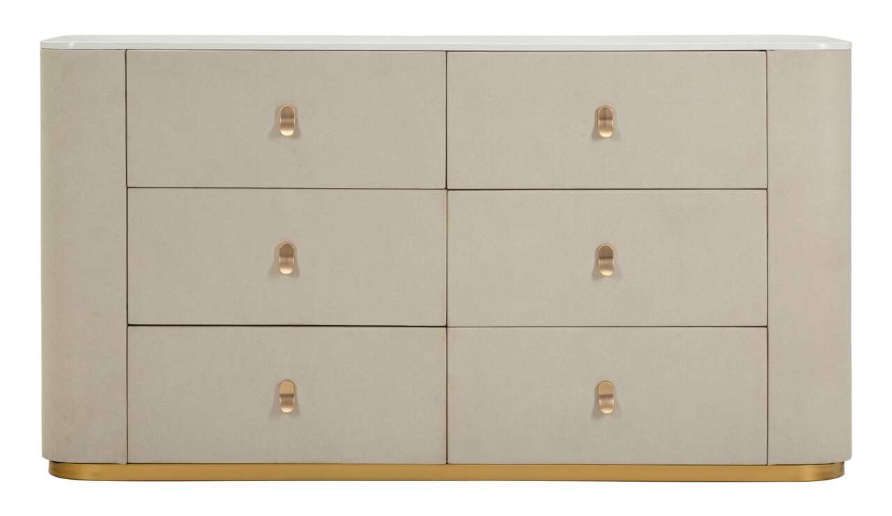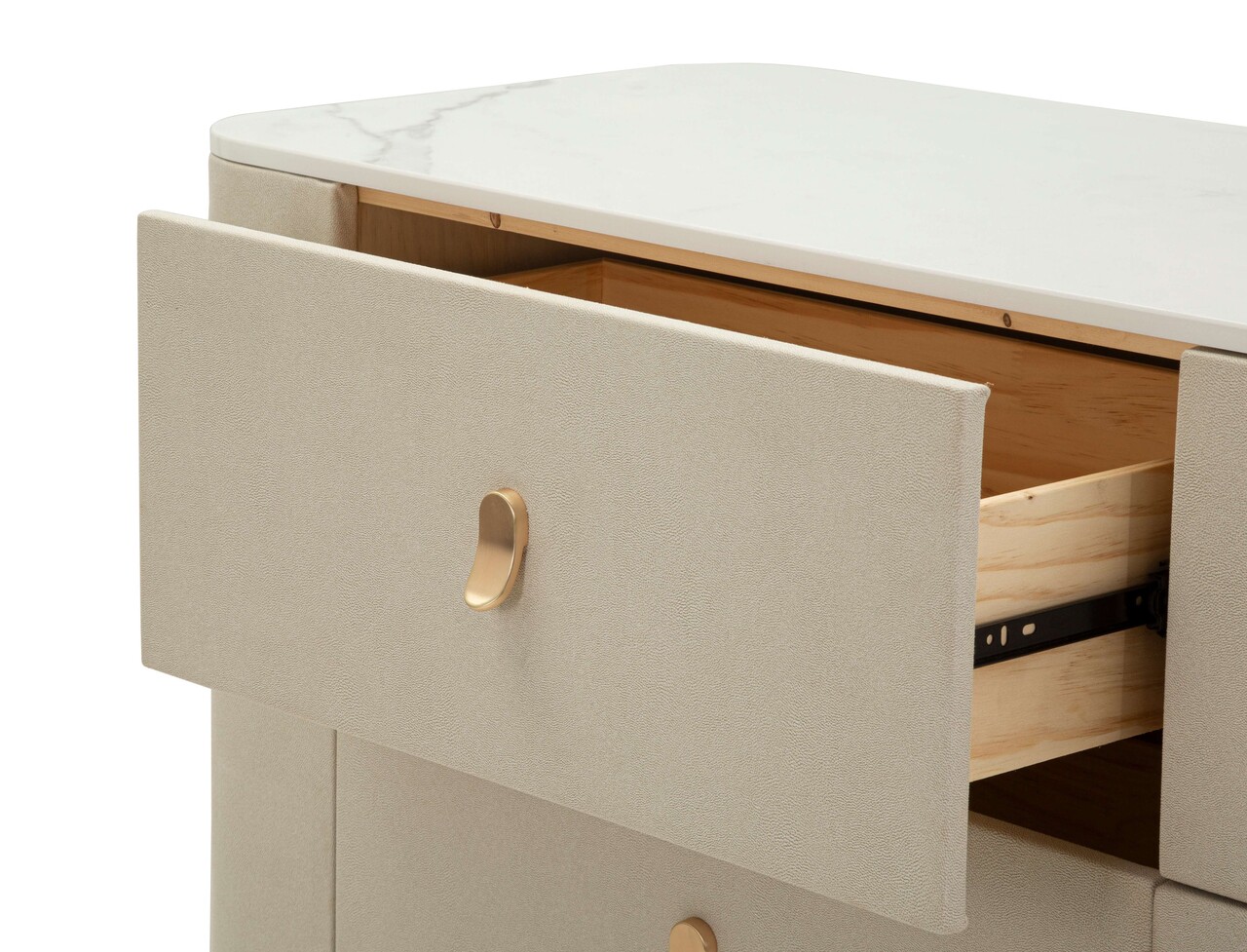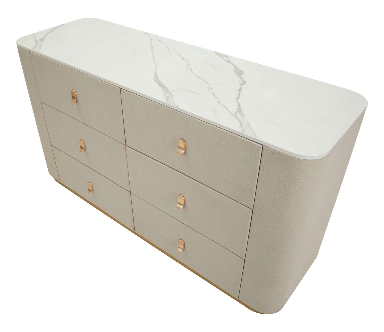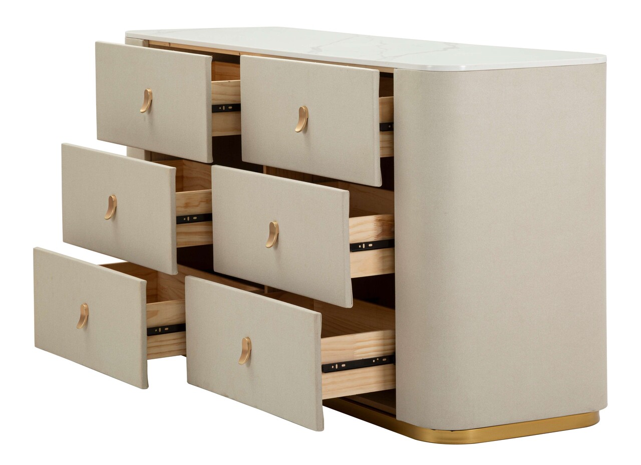 Comoda Beauty, Mauro Ferretti, 140x45x76 cm, lemn de pin/MDF/metal, crem/auriu