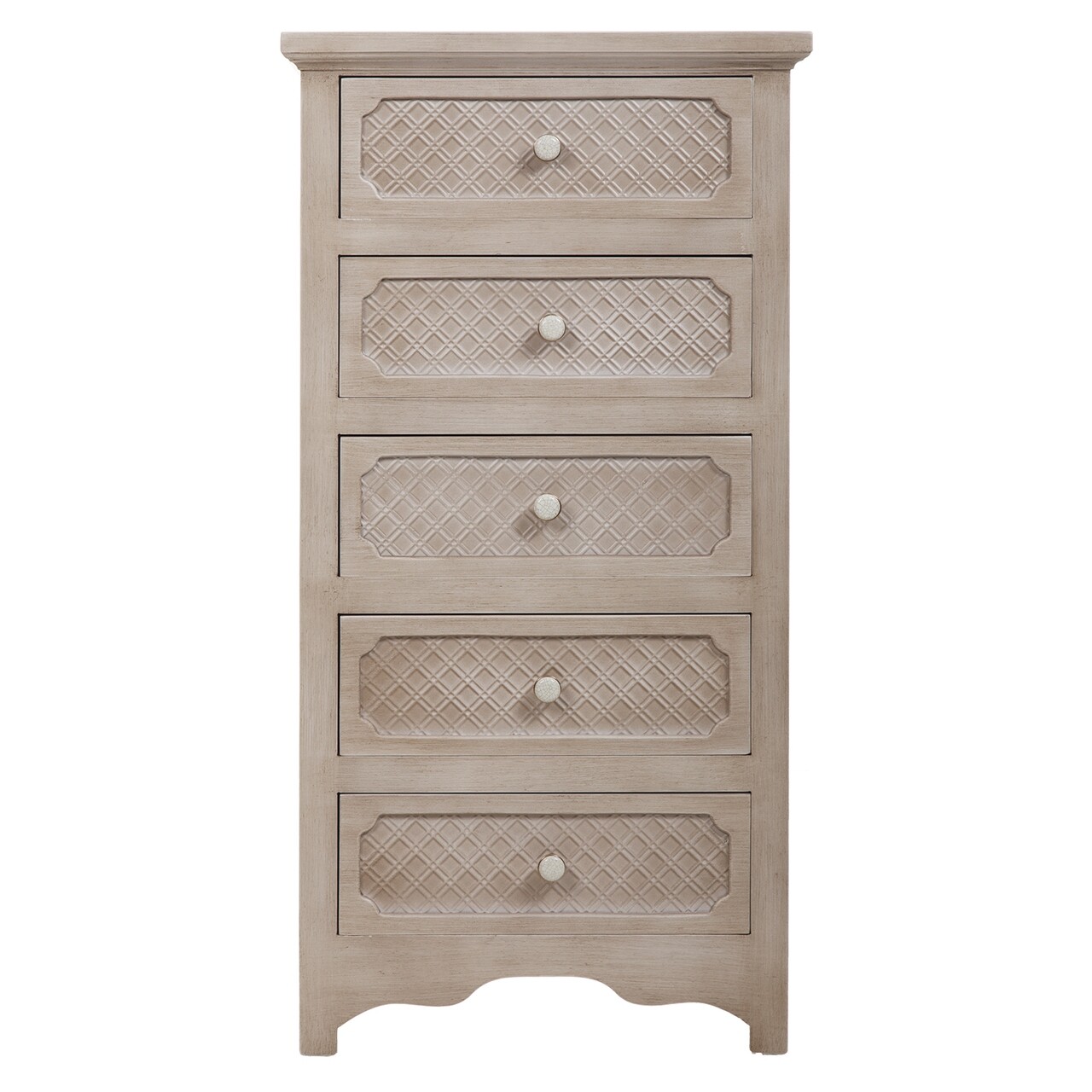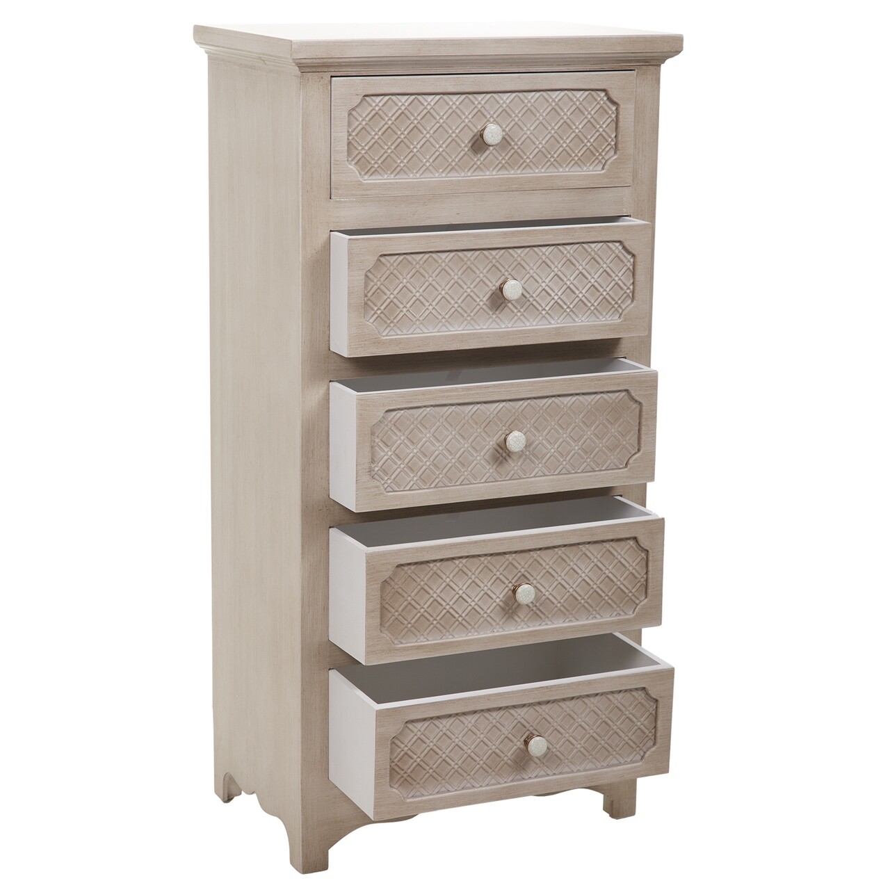 Comoda Charlotte, Creaciones Meng, 51x32x101 cm, lemn de brad, alb antic