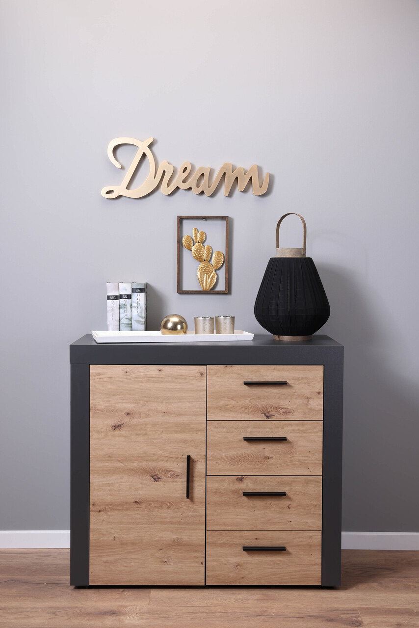 Comoda Corbeto 1T4S, Inter Link, 94x90x86 cm, lemn, antracit/natur