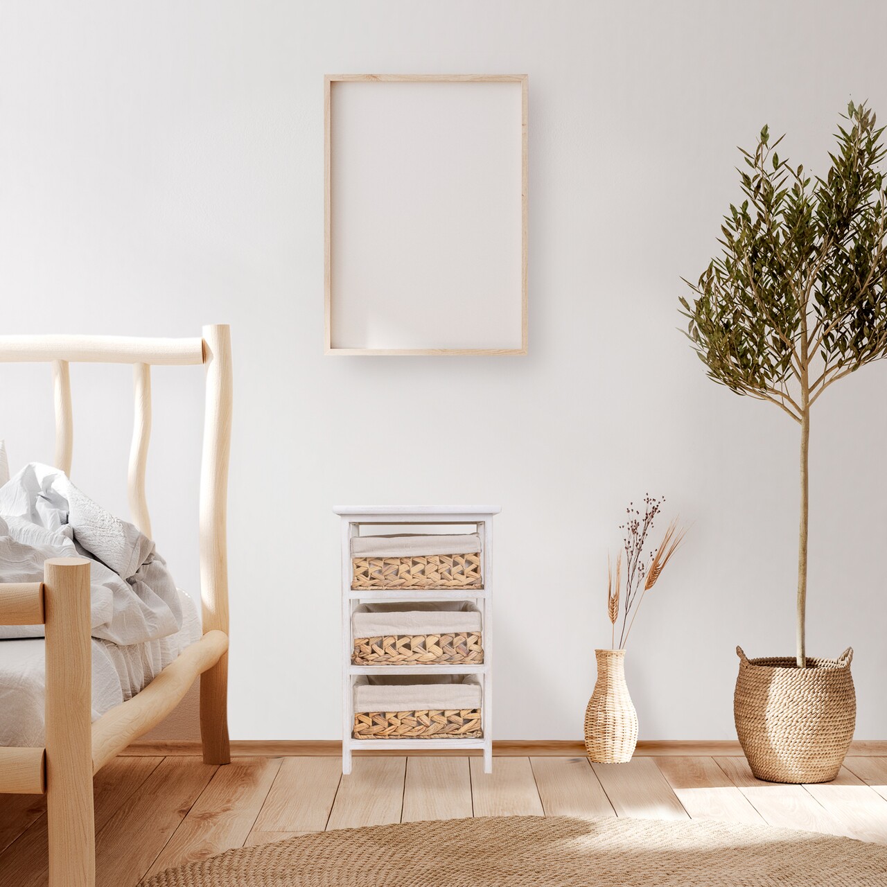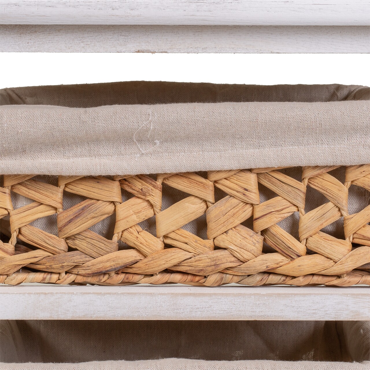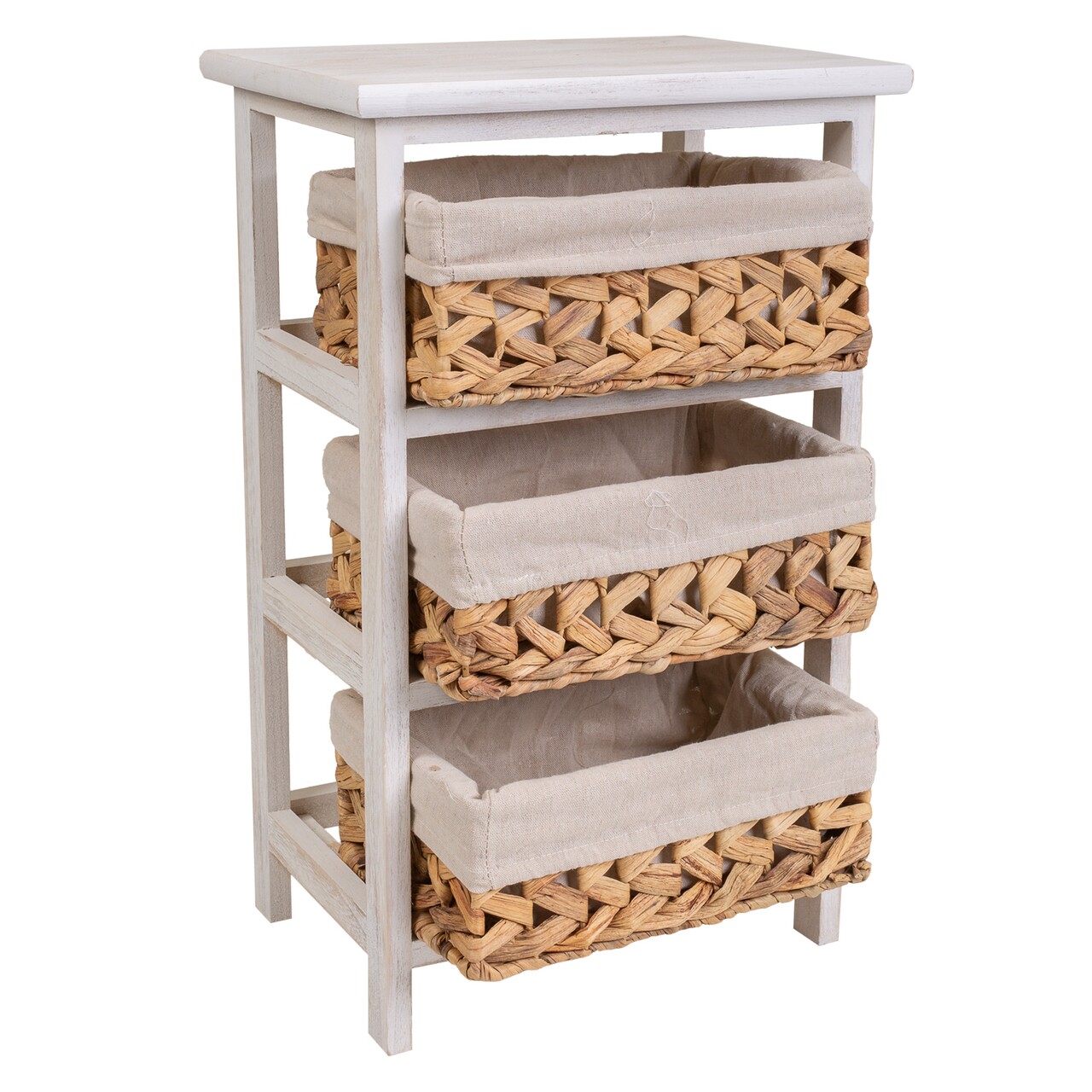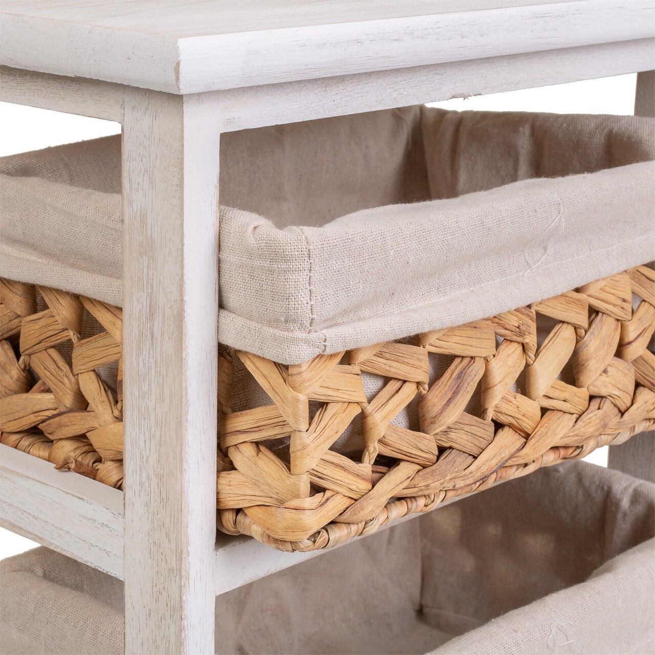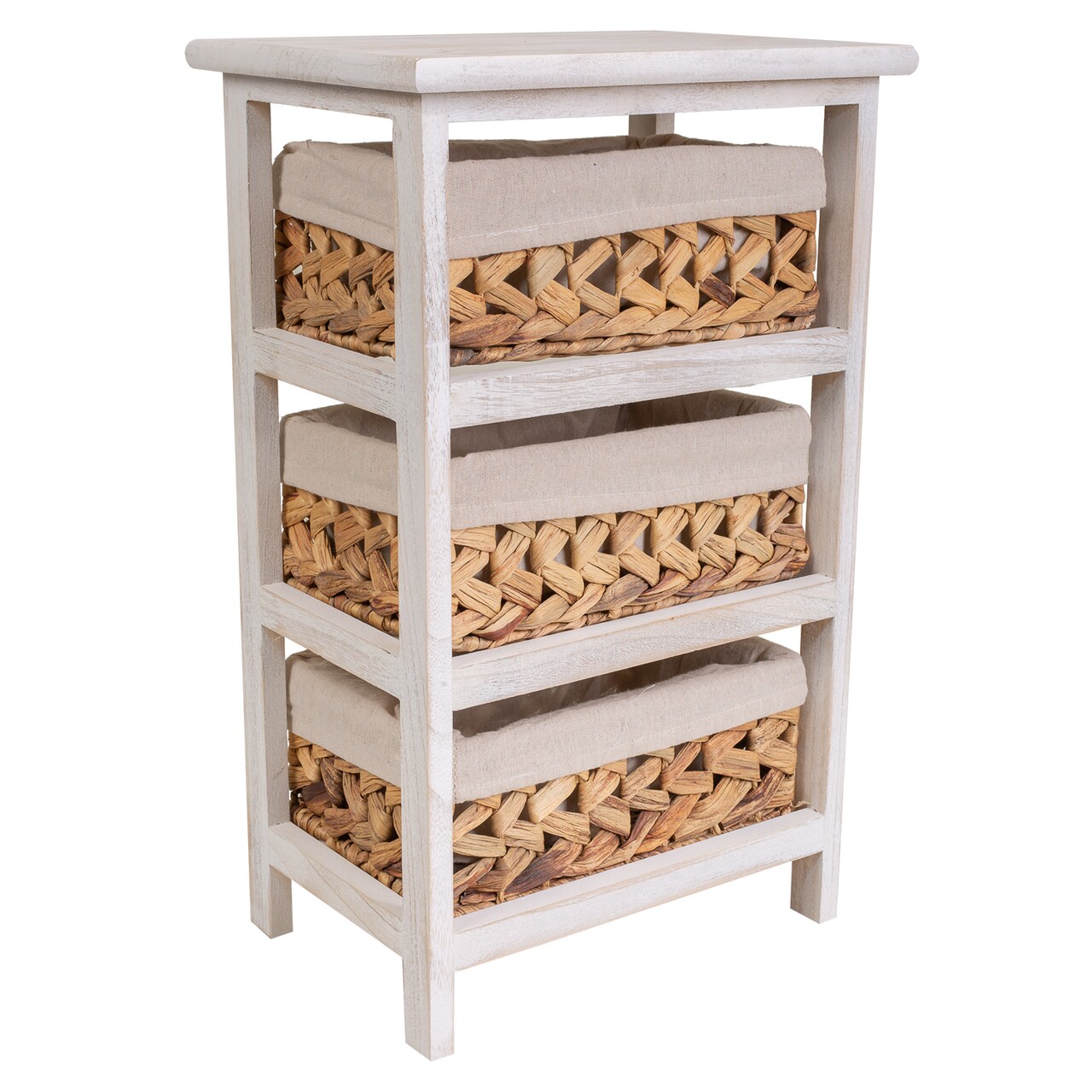 Comoda cu 3 cosuri Creaciones Meng, 35x25x57 cm, lemn de paulownia, alb antic
