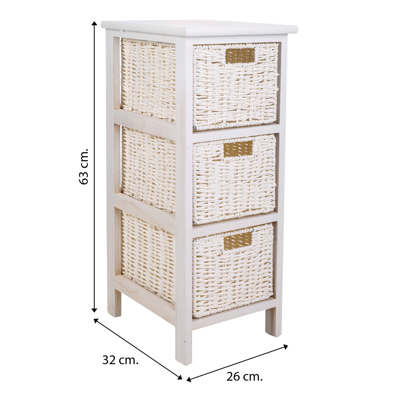 Comoda cu 3 cosuri Thea, Creaciones Meng, 26x32x63 cm, lemn de paulownia