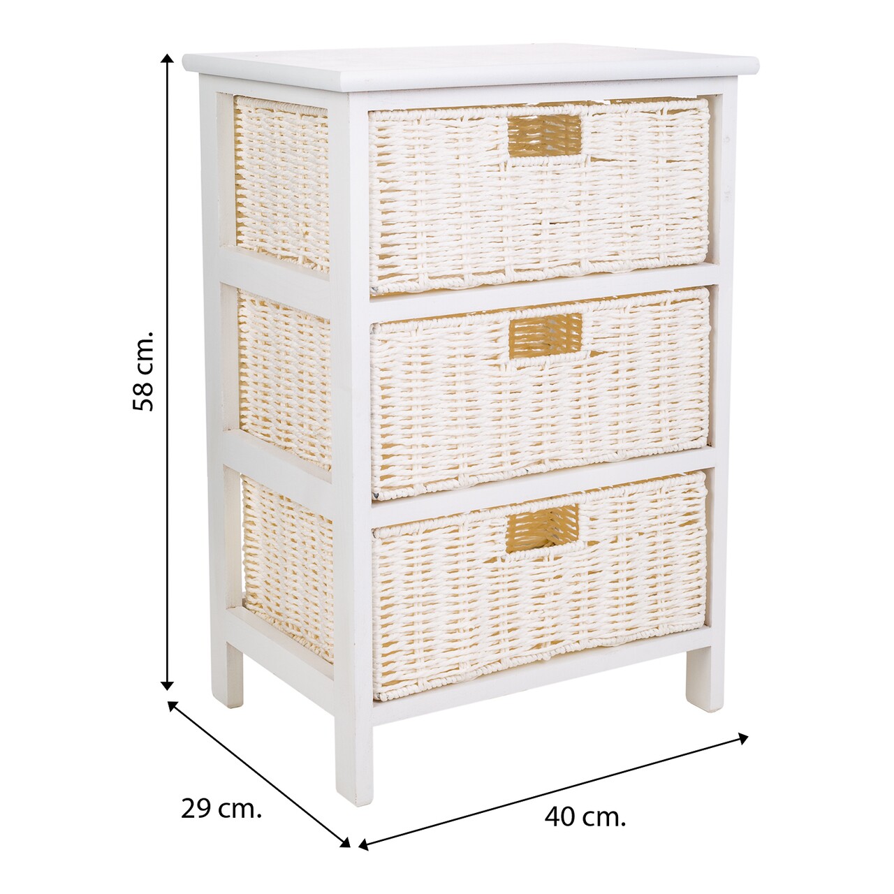 Comoda cu 3 cosuri Thea, Creaciones Meng, 40x29x58 cm, lemn de paulownia