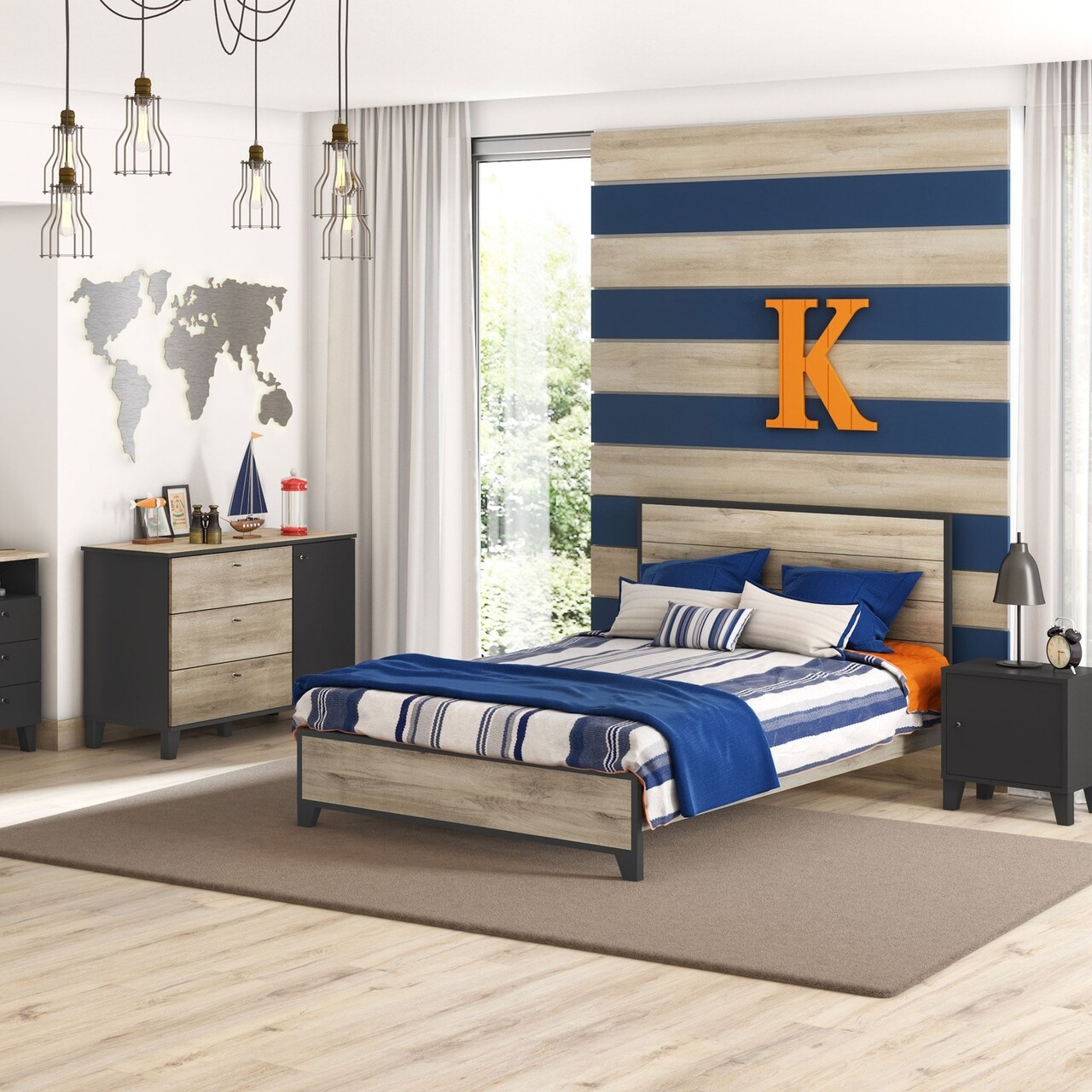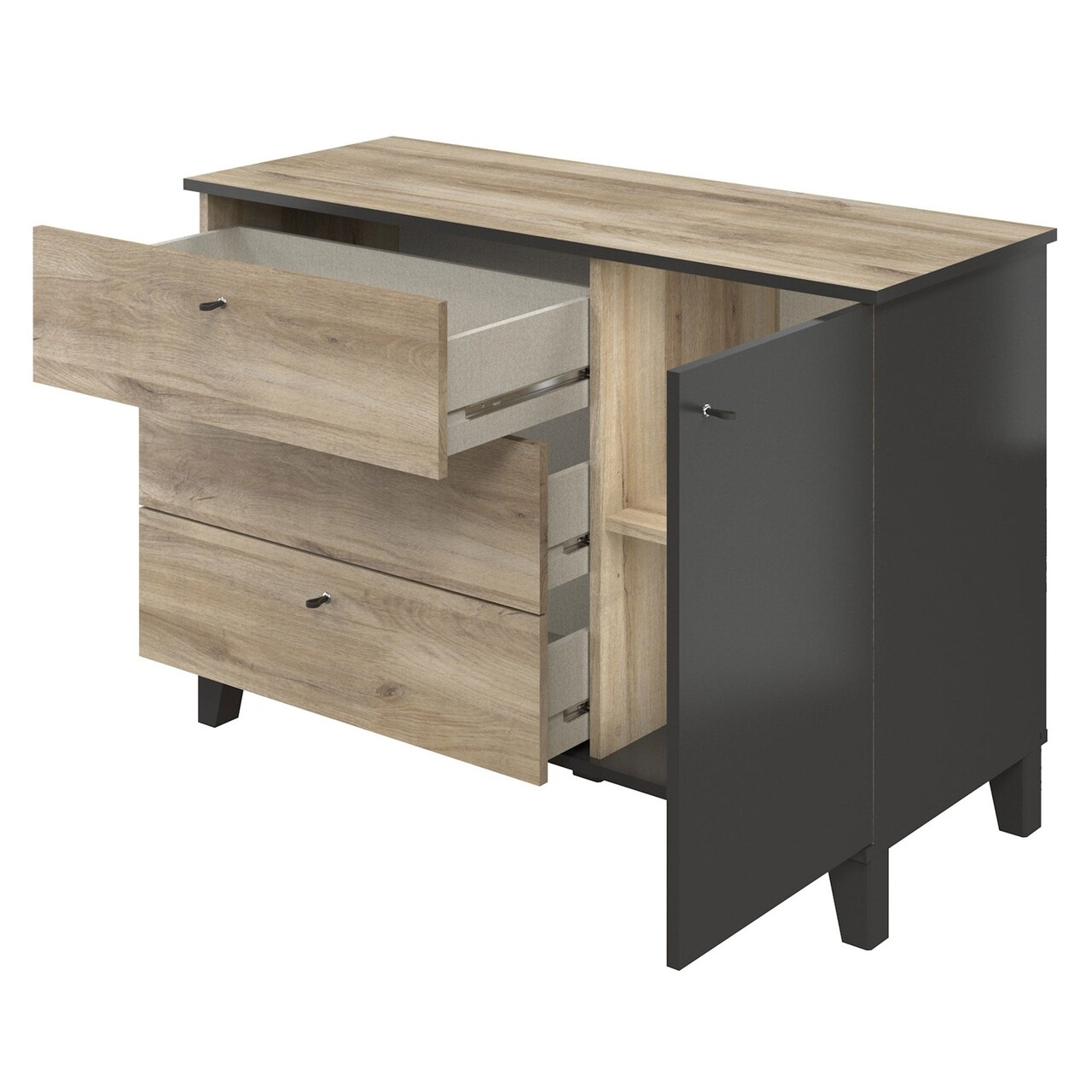 Comoda cu 3 sertare, 1 usa, Henry, L.110 l.48 H.74, pal, stejar/negru