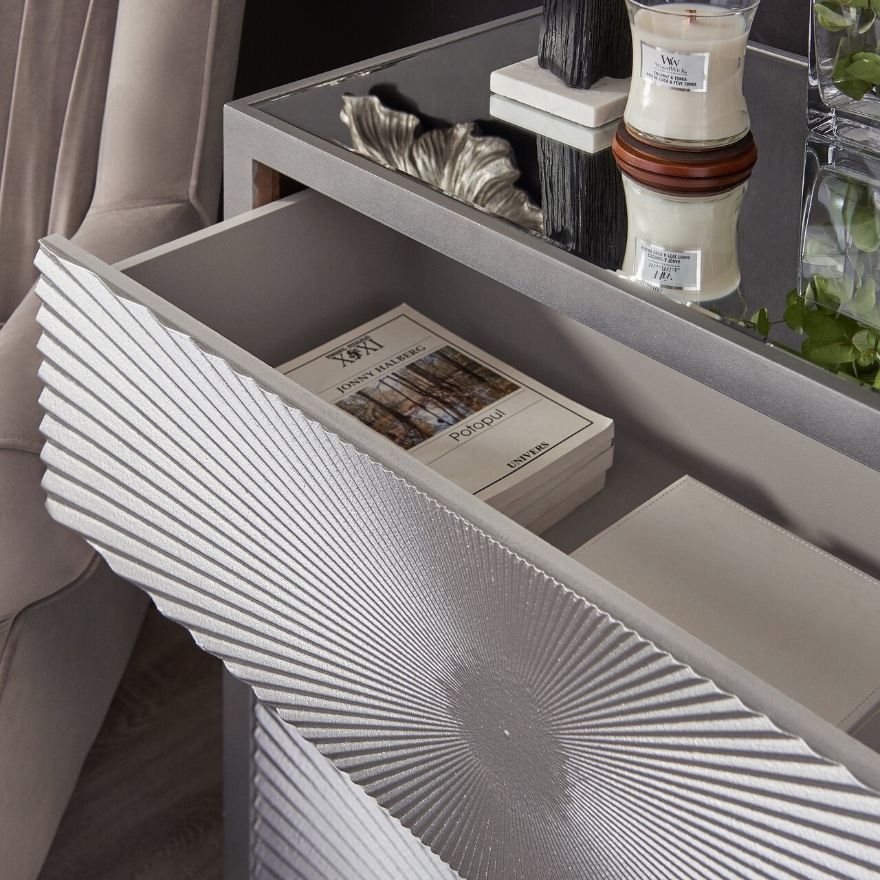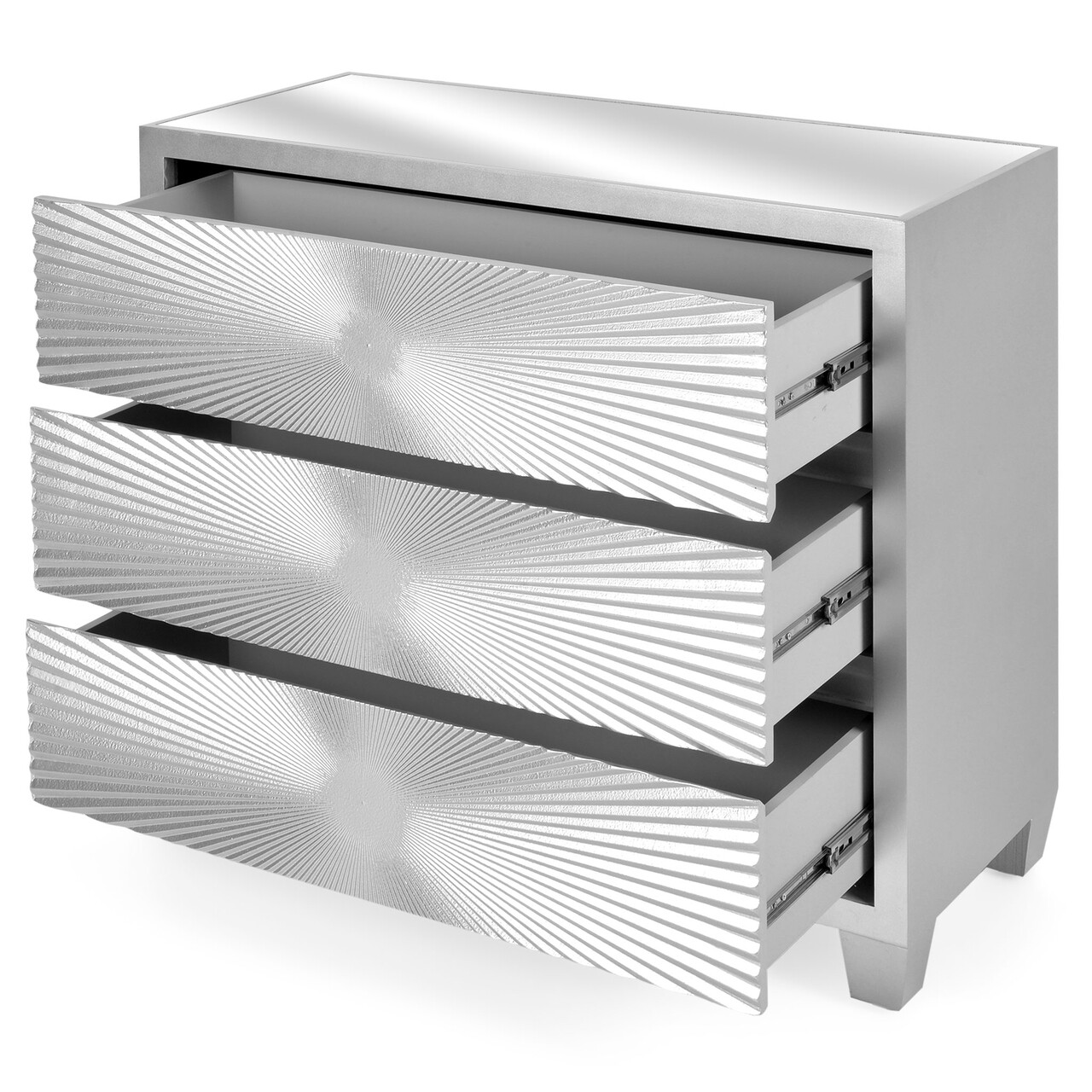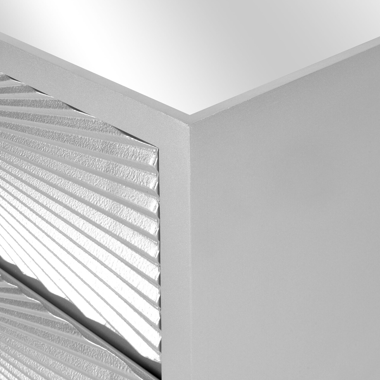 Comoda cu 3 sertare, Ariana, L.92 l.40 H.85, mdf/sticla, argintiu