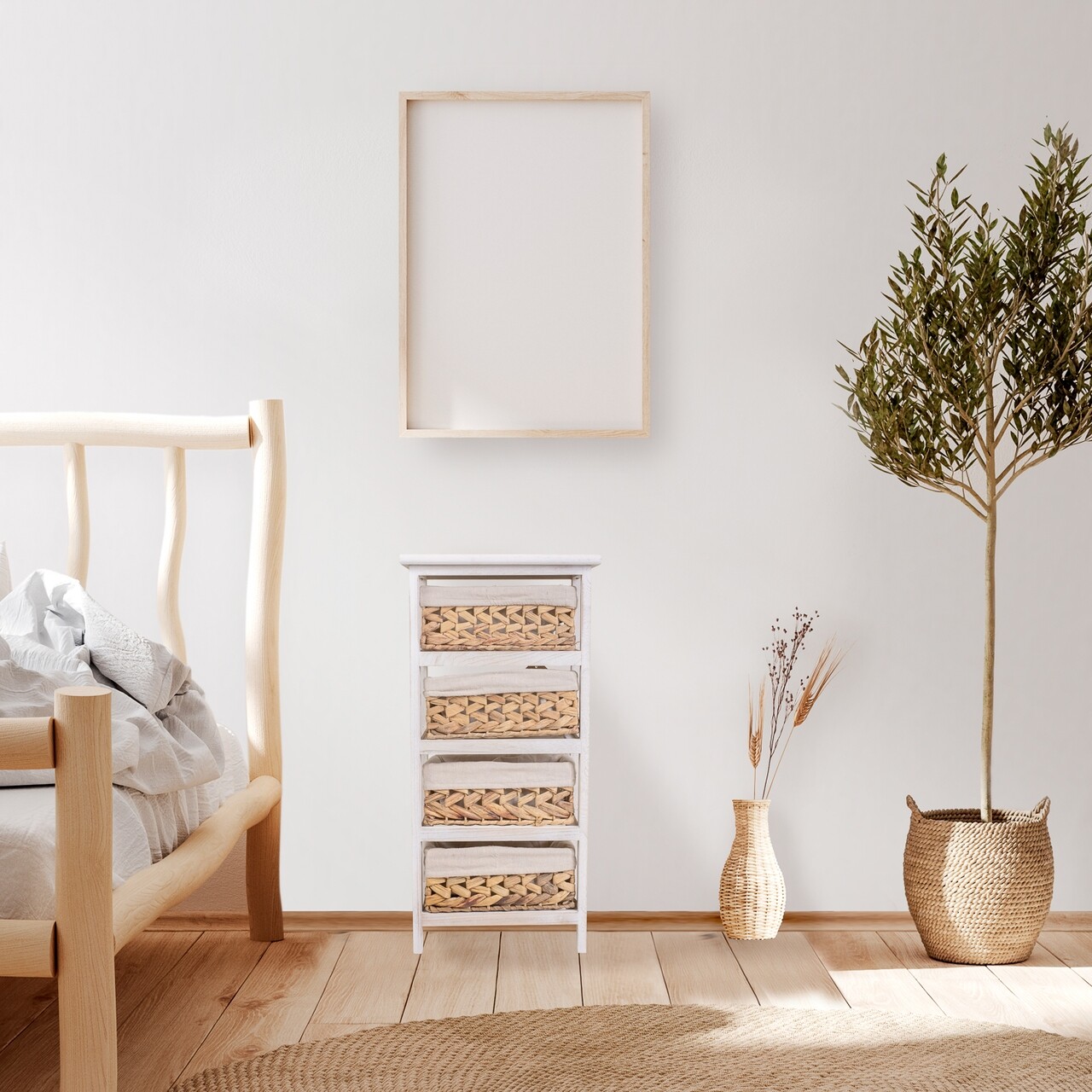 Comoda cu 4 sertare Creaciones Meng, 35x25x72 cm, lemn de paulownia/zambila de apa
