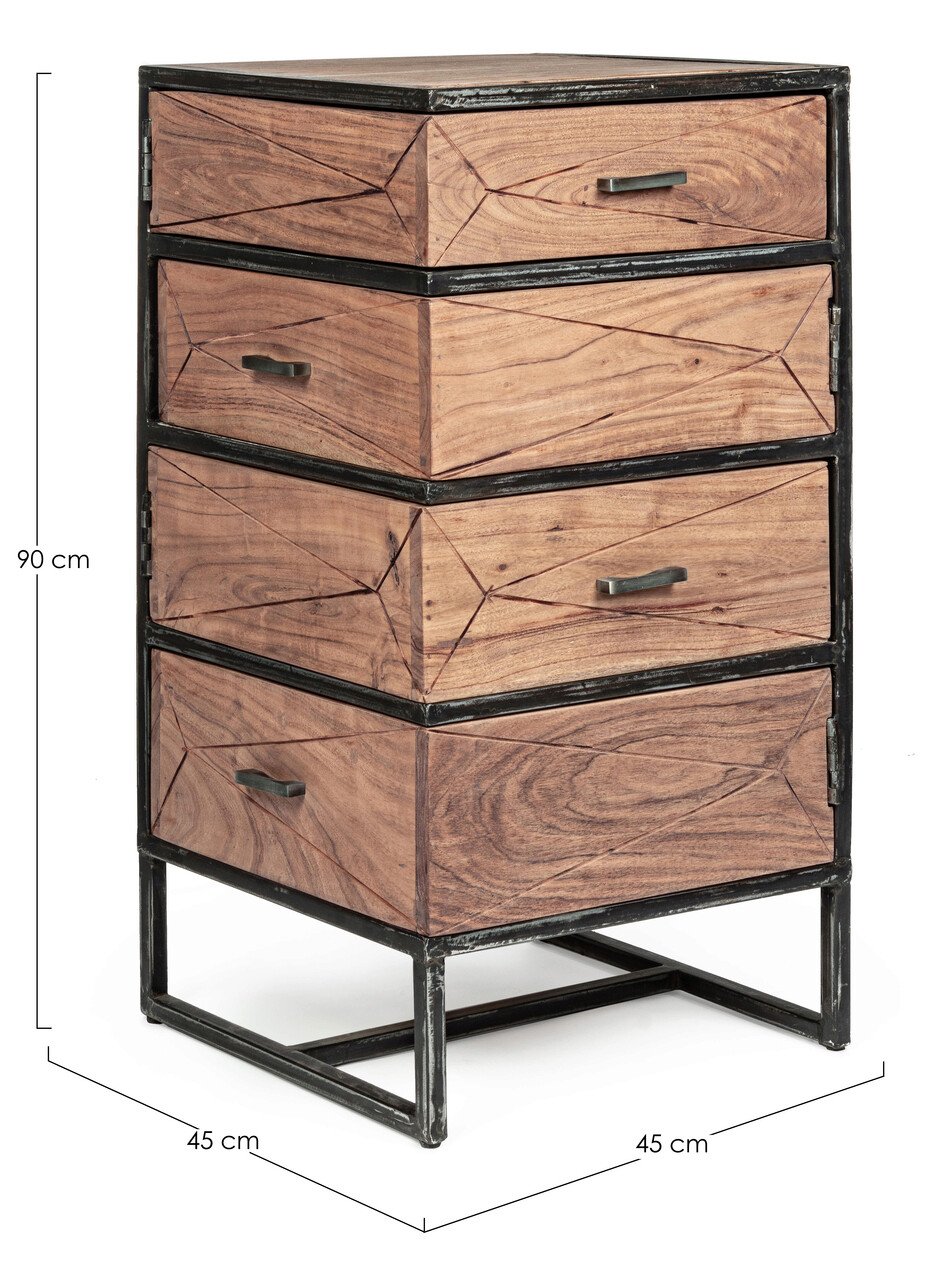 Comoda cu 4 sertare Egon, Bizzotto, 45x45x90 cm, otel/lemn de salcam