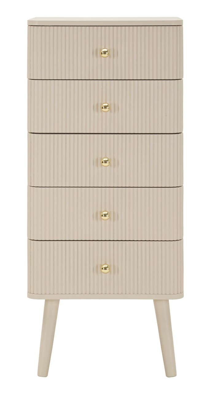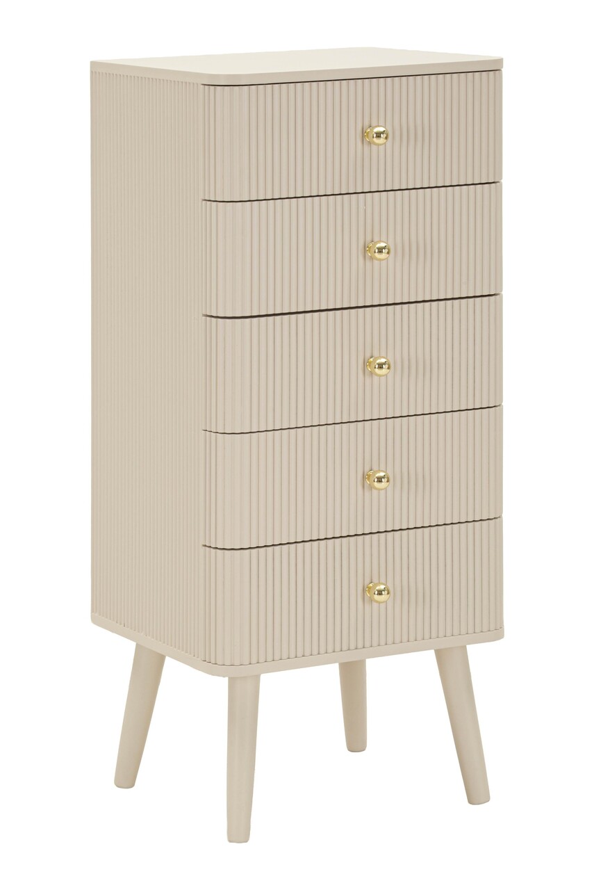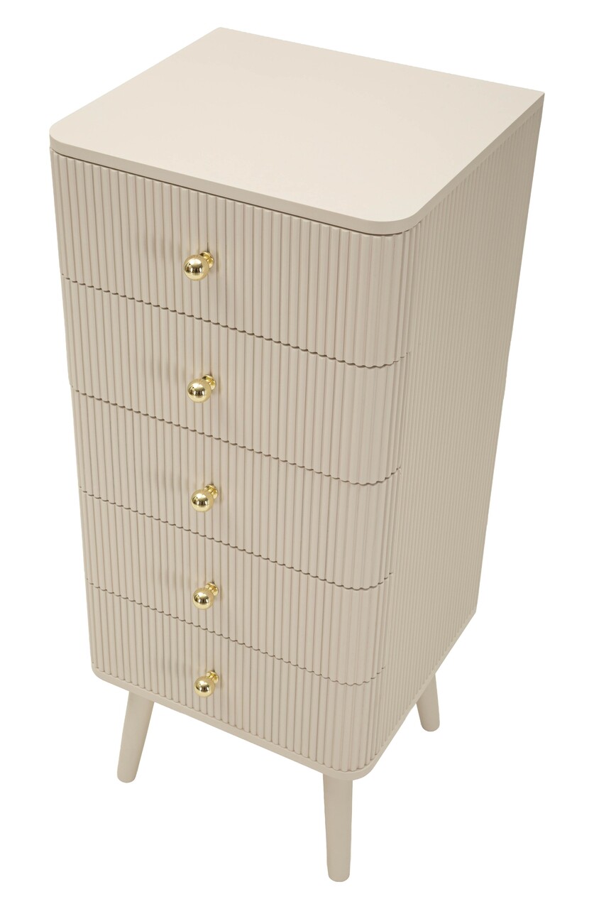 Comoda cu 5 sertare, Mauro Ferretti, Shy, 37.5x34x89 cm, lemn de pin, alb/auriu
