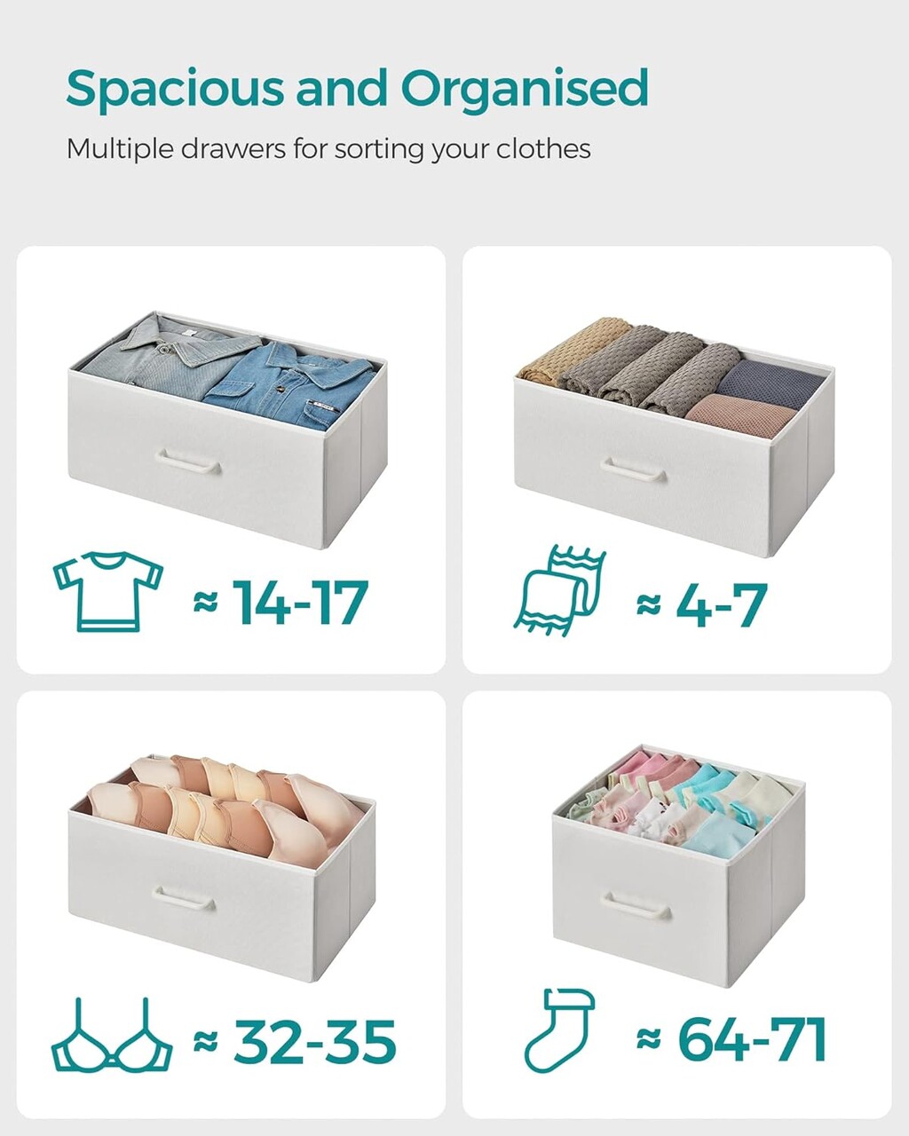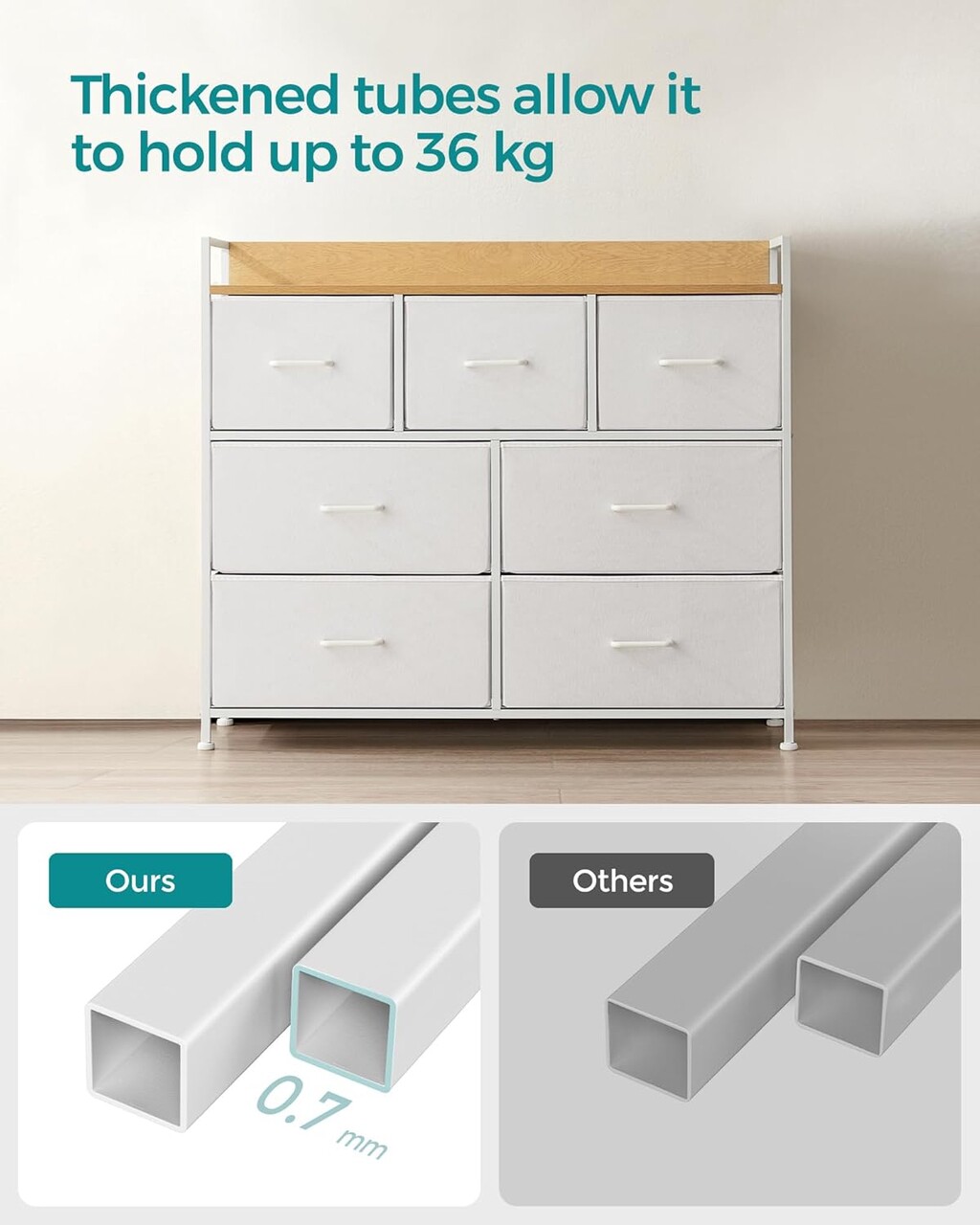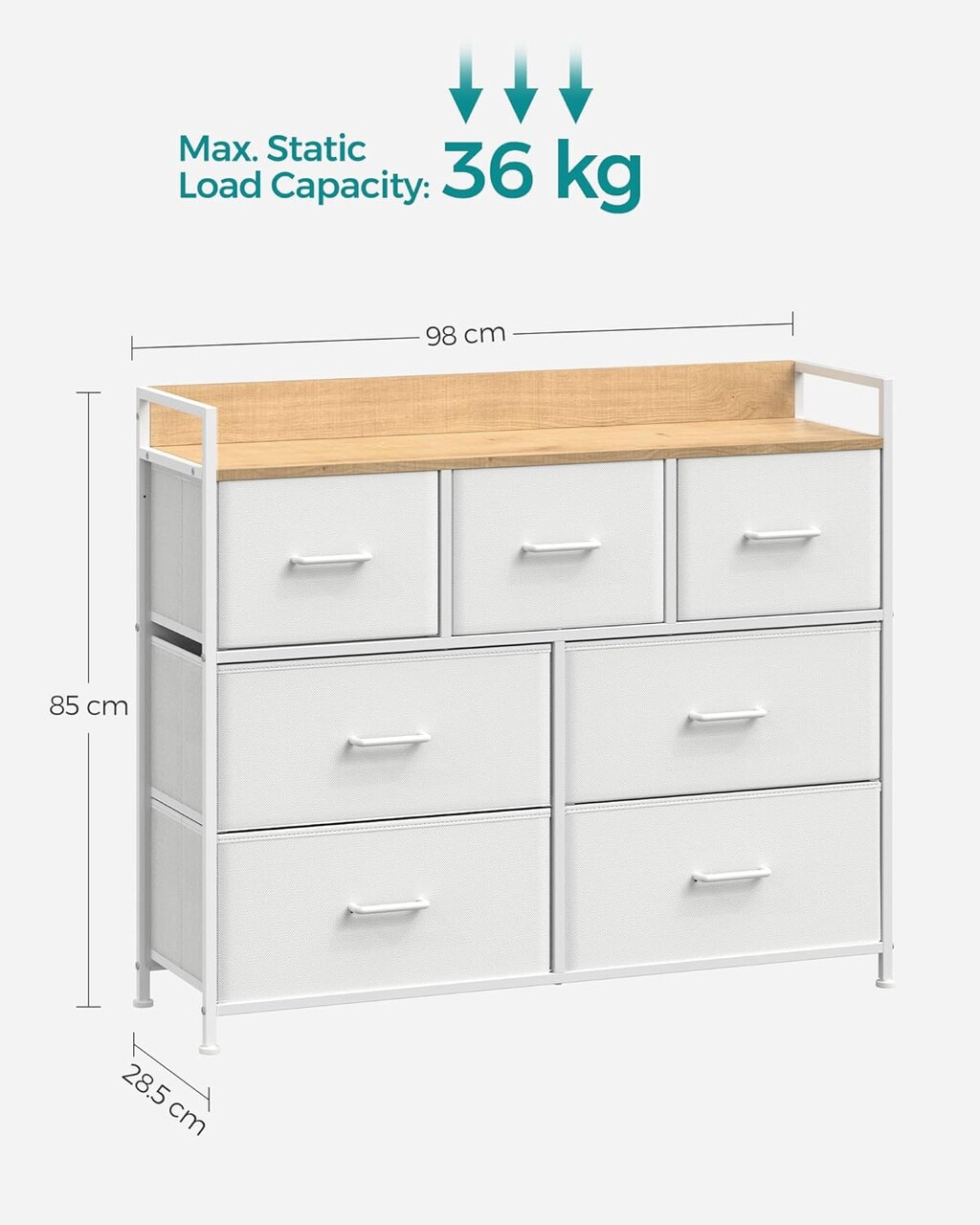 Comoda cu 7 sertare textile, Songmics, 98x28.5x85 cm, max 36 kg, otel/material nesetut, alb nor
