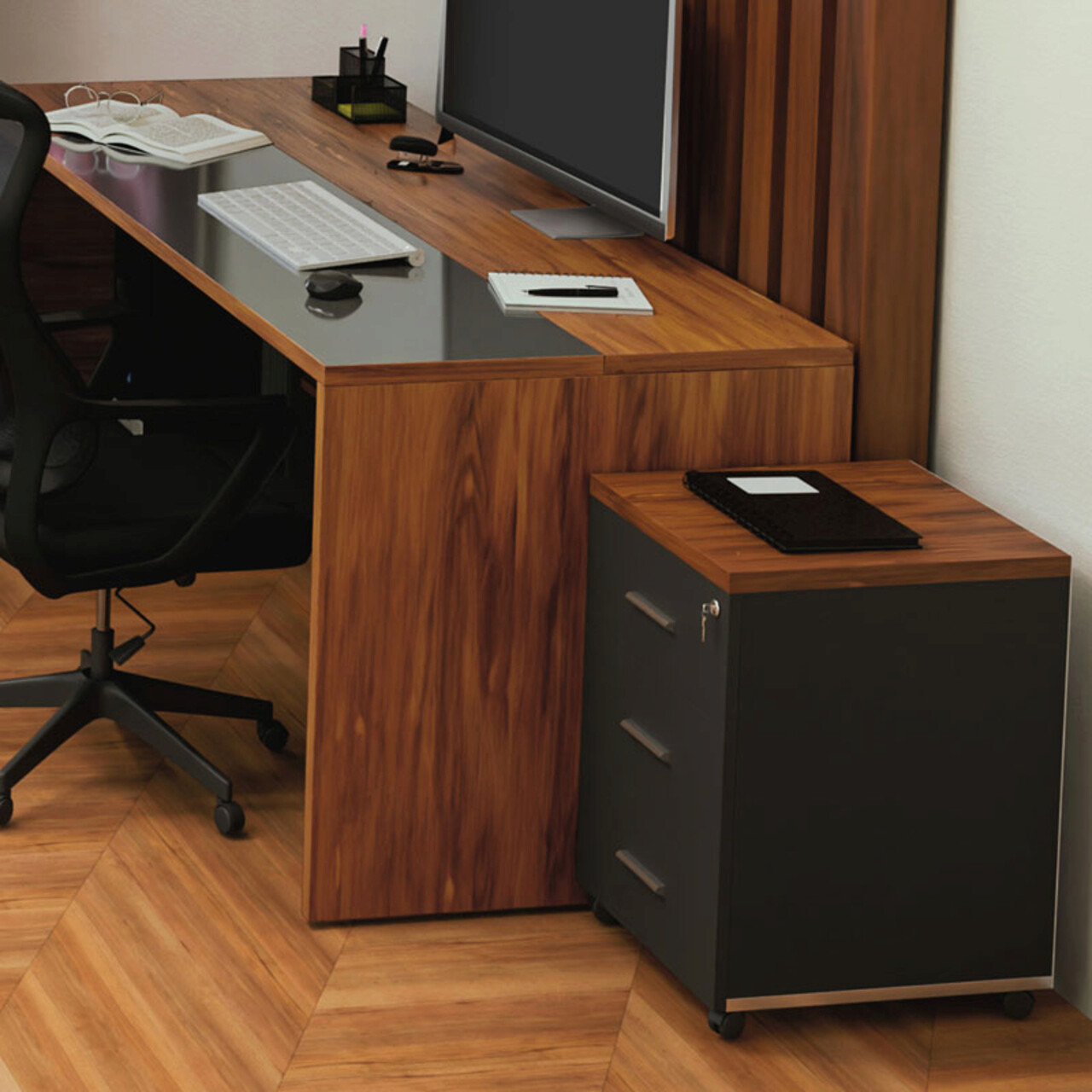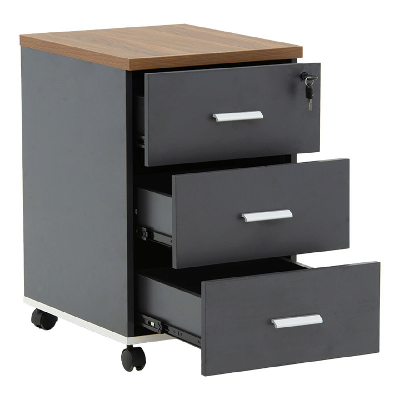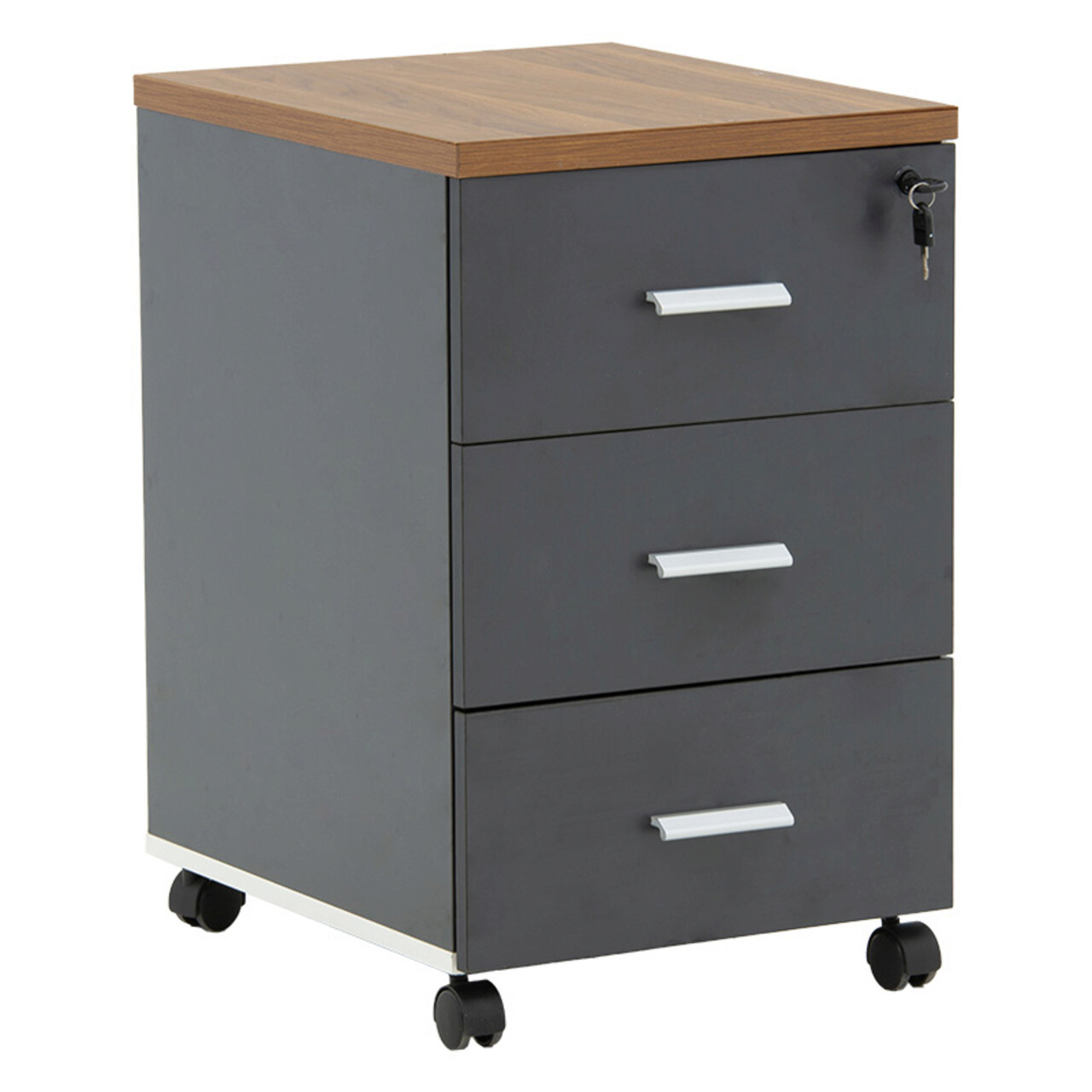 Comoda cu roti si sertar cu cheie Oscar, Pakoworld, 40x48x63 cm, PAL melaminat, maro/antracit