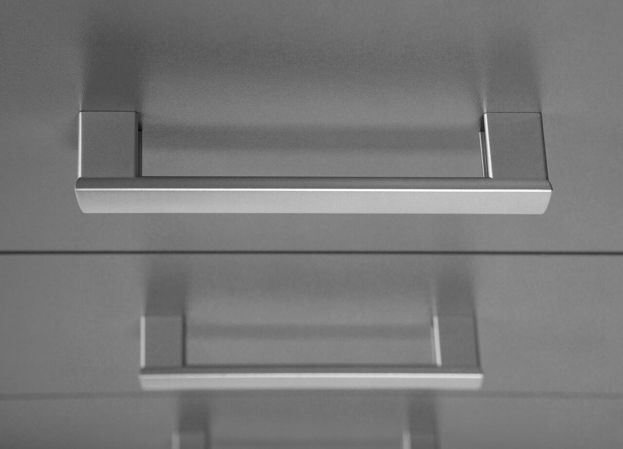 Aceasta comoda a fost conceputa pentru a se integra perfect in orice stil de decor si pentru a imbunatati orice camera din casa. Culoarea sa moderna gri grafit este accentuata de manerele gri-argintiu. Liniile sale curate reflecta tendintele actuale de design interior. O puteti combina cu biroul, raftul si alte comode din seria „ELENZIO” pentru a crea si mai mult spatiu de depozitare.