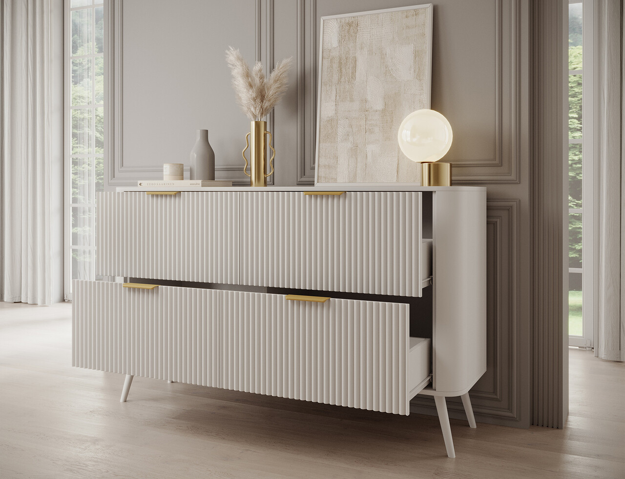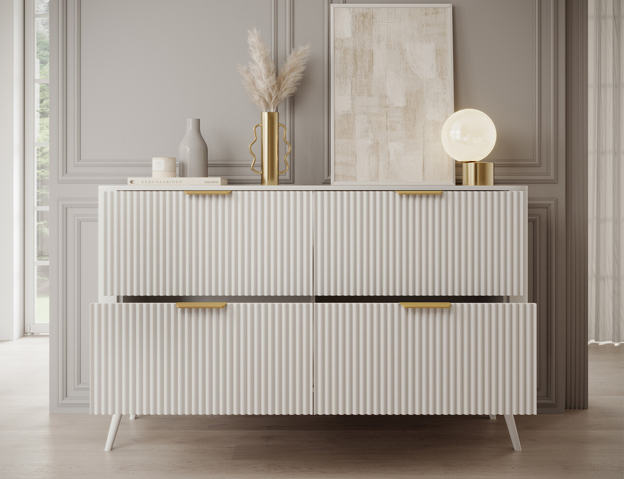 Comoda ELTAP, Chavelle, 150x40x90 cm, PAL/MDF, alb