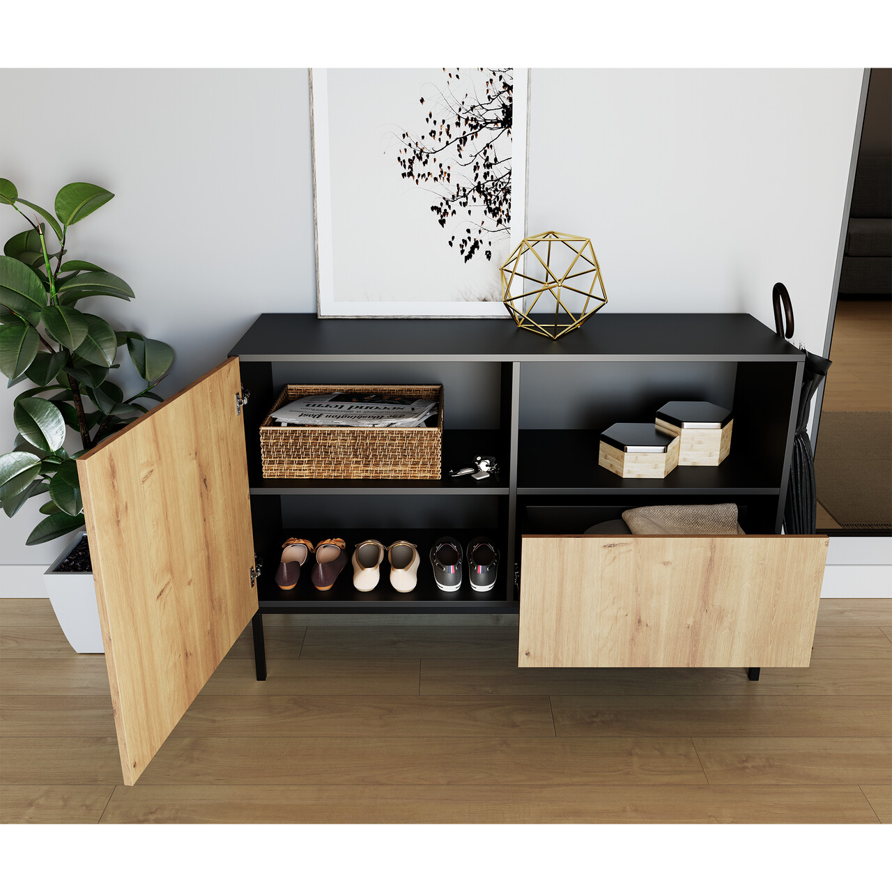 Comoda ELTAP, Lanzzi, 120x40x80 cm, MDF laminat, negru/stejar