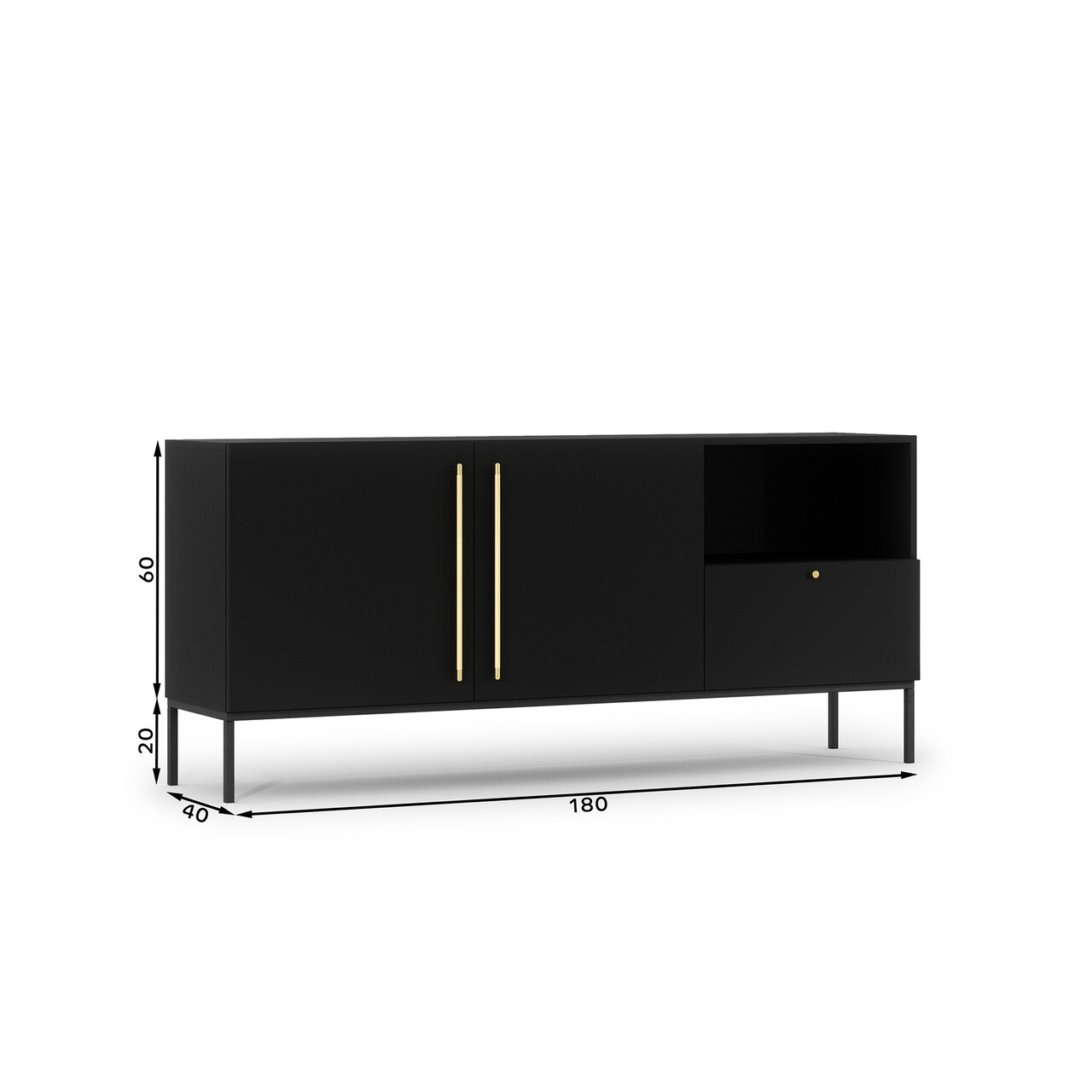 Comoda ELTAP, Lanzzi, 180x40x80 cm, MDF laminat, negru/auriu