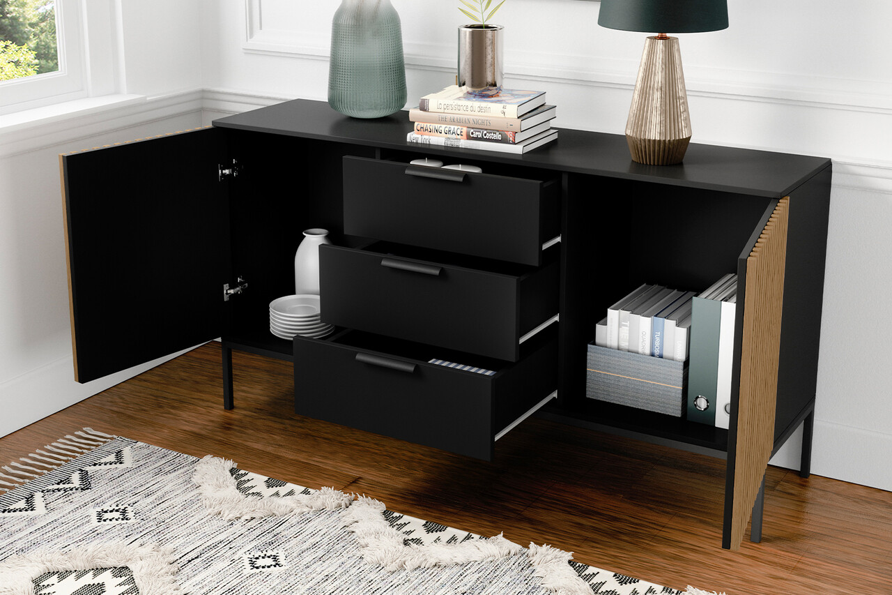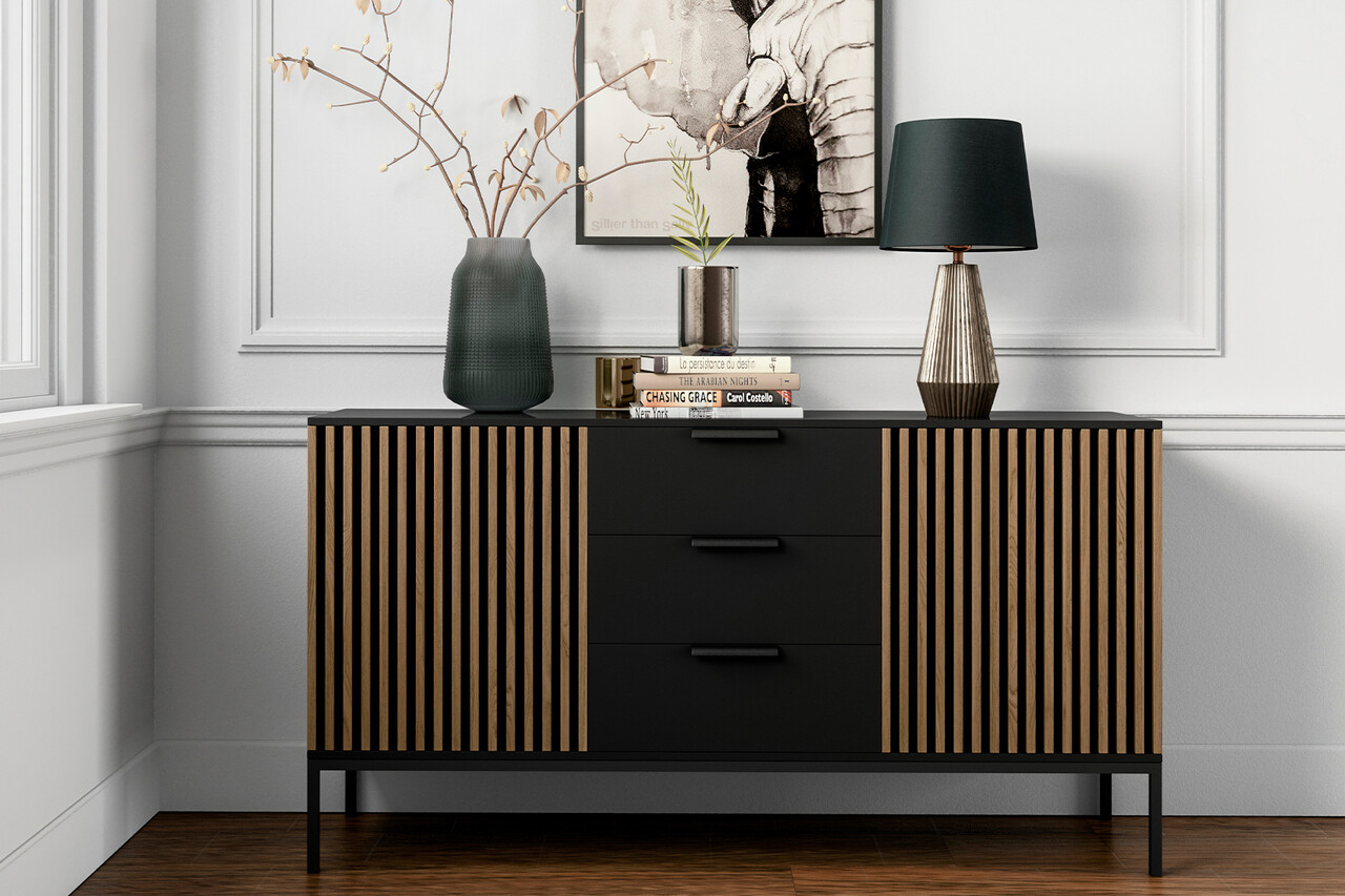 Comoda ELTAP, Meorati, 150x40x80 cm, PAL/ABS, negru/maro