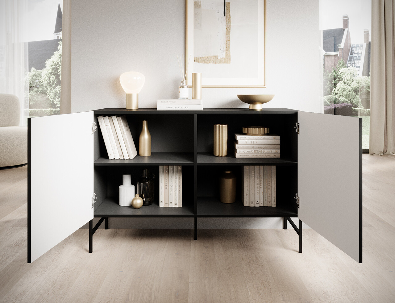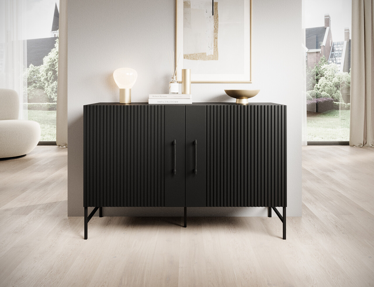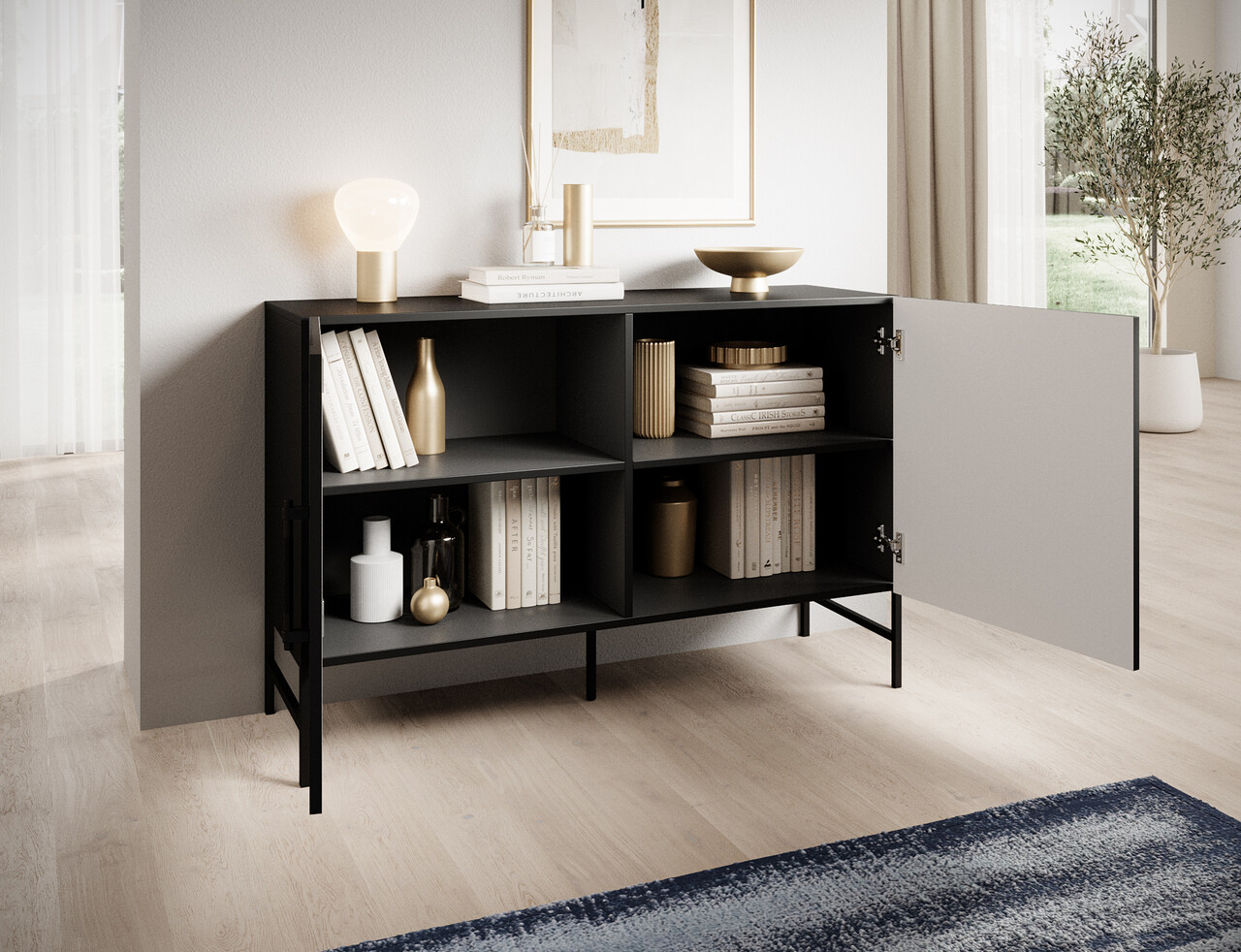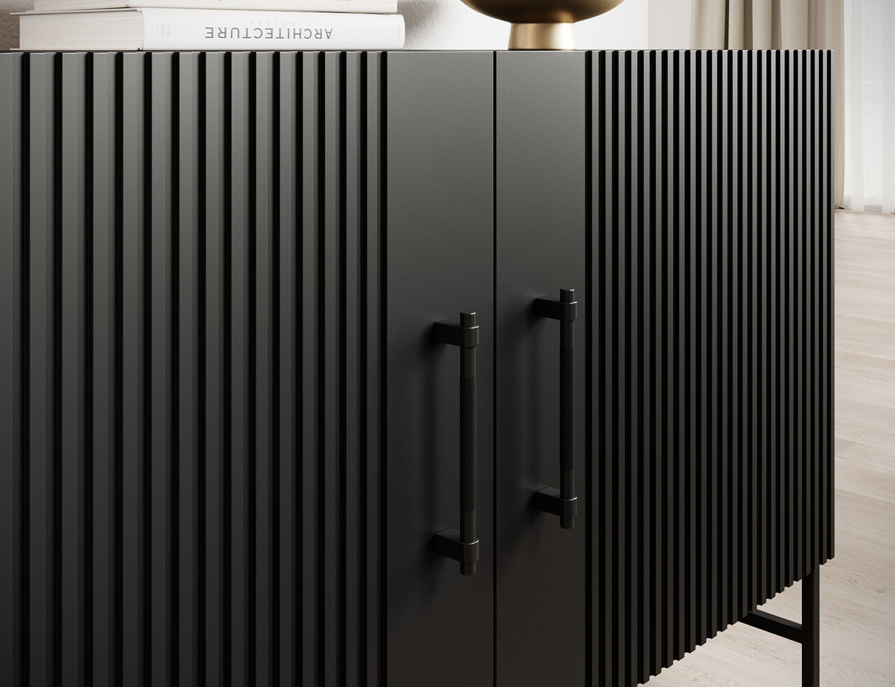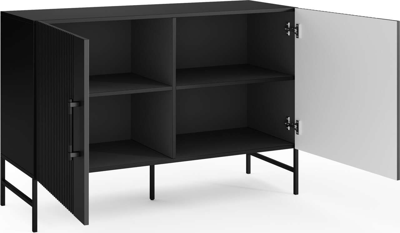 Comoda din colectia Raftt este o combinatie perfecta intre designul modern si functionalitate. Constructia sa solida este realizata din placa aglomerata laminata iar fronturile frezate din MDF acoperit cu folie ii confera un caracter unic, accentuand stilul industrial al piesei de mobilier. Intregul ansamblu este sustinut de picioare metalice negre vopsite electrostatic, asigurand stabilitate si durabilitate, dar si un aspect usor. Manerele din aluminiu de culoare neagra se integreaza perfect in design, permitand deschiderea facila a sertarelor si dulapurilor. Un avantaj suplimentar este posibilitatea montarii pe perete, sporind siguranta in utilizare. Comoda Raftt se potriveste perfect in amenajarile de tip loft, industrial sau modern, fiind atat un element practic, cat si unul de design in interior.