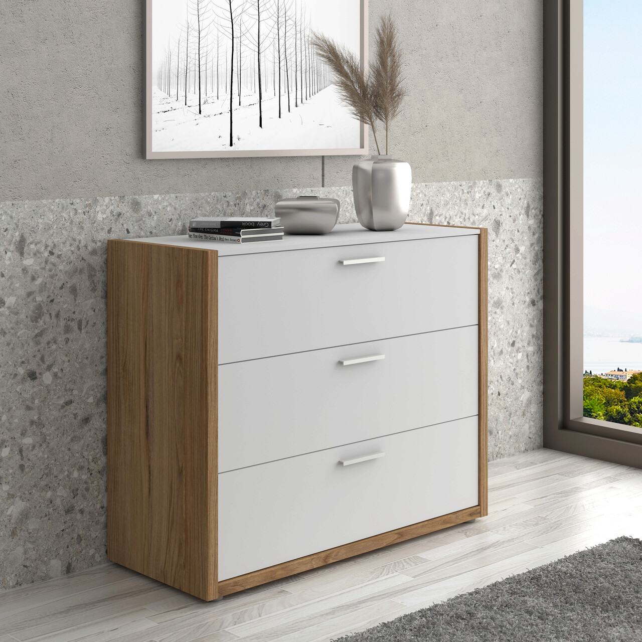 Comoda Ermelo, Bedora, 101.1x41.5x83.3 cm, PAL/metal, stejar/alb