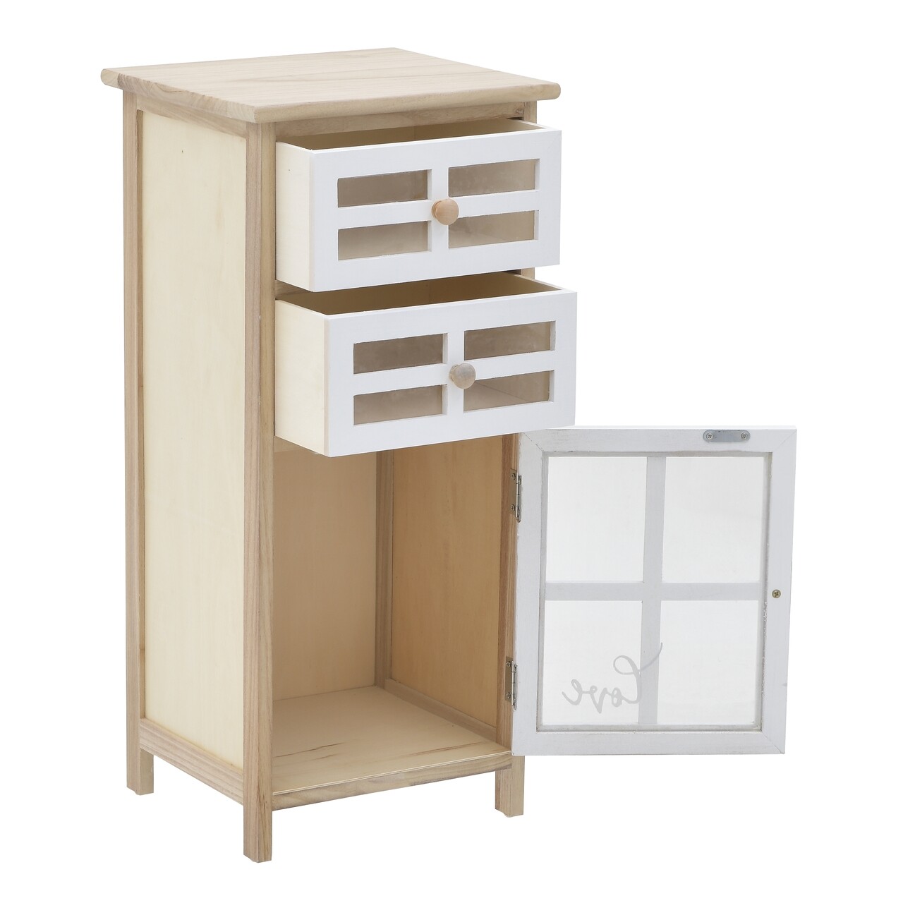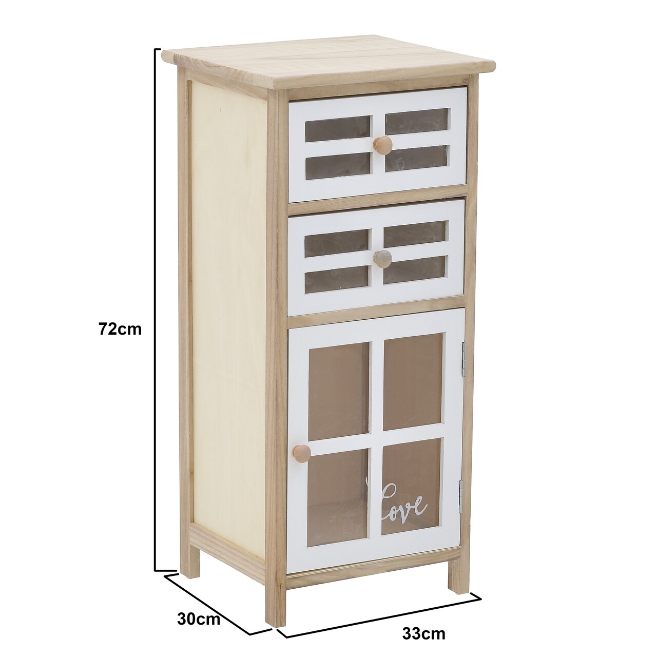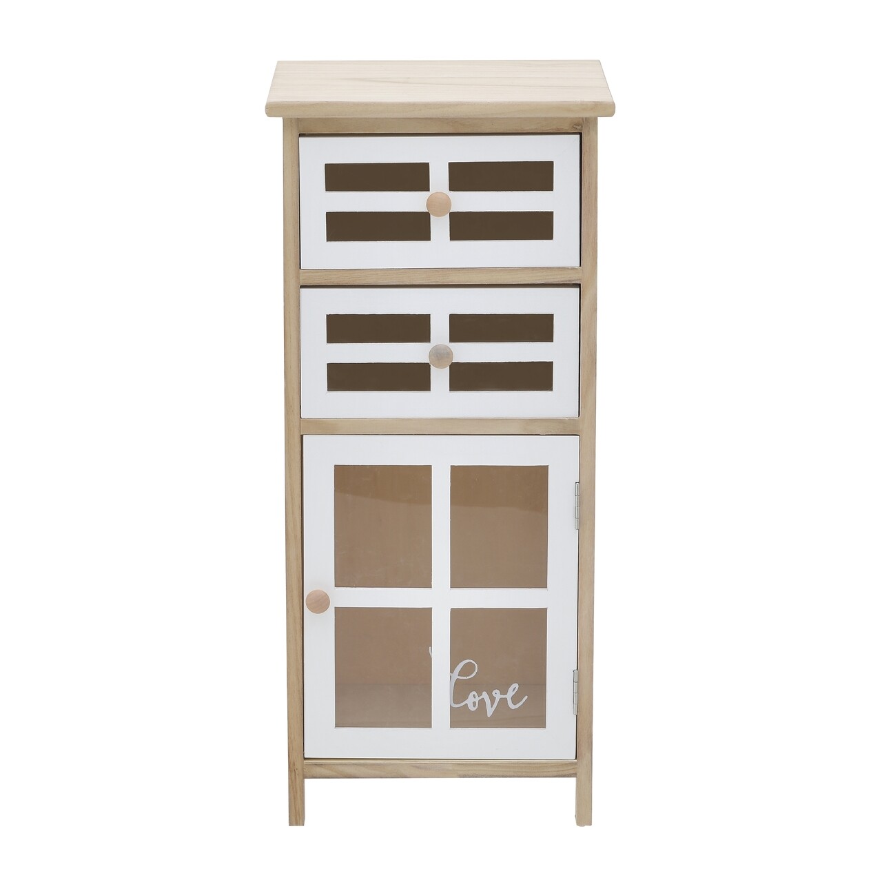 Comoda Greta, InArt, 33x30x72 cm, lemn de mesteacan/paulownia, alb/natural