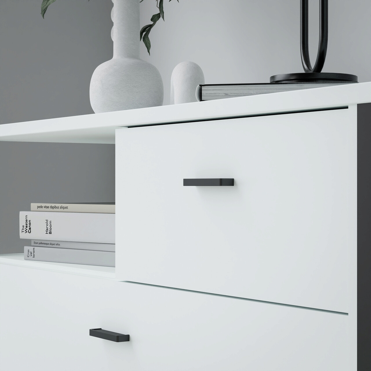 Comoda Heusden, Bedora, 104.8x40.2x85.1 cm, PAL/metal, gri/negru