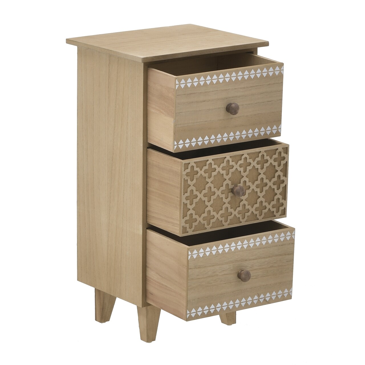 Comoda InArt, 30x25x57 cm, 3 sertare, MDF/paulownia, natural
