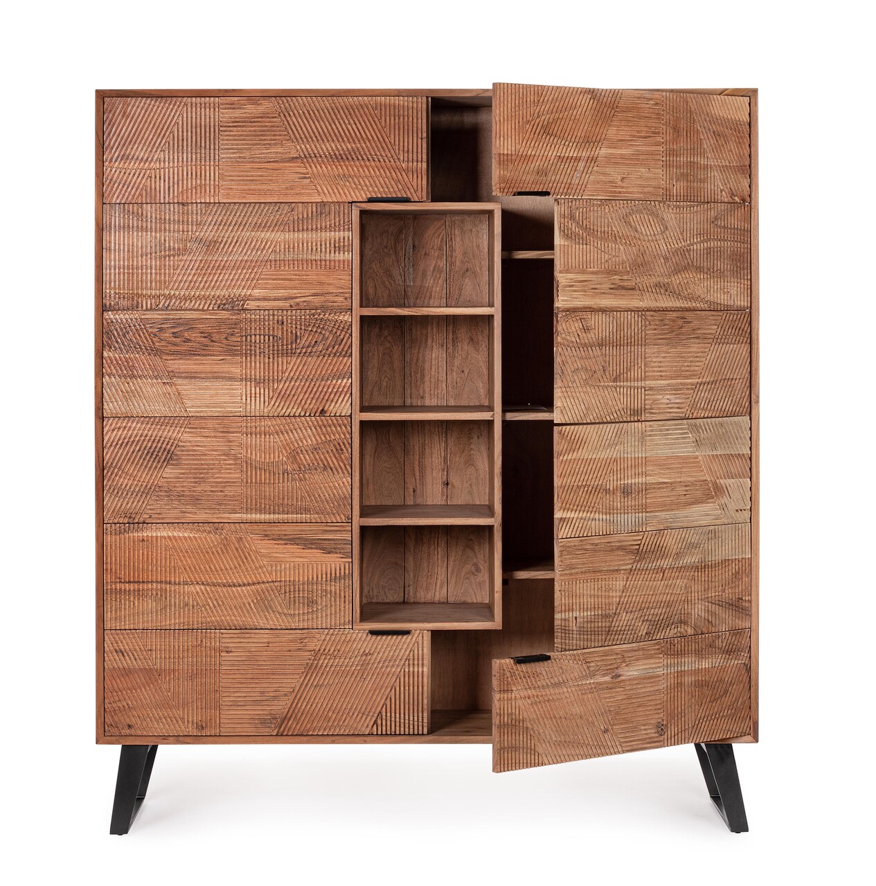 Comoda Isar, Bizzotto, 145x40x165 cm, lemn de salcam, detalii lucrate manual, maro