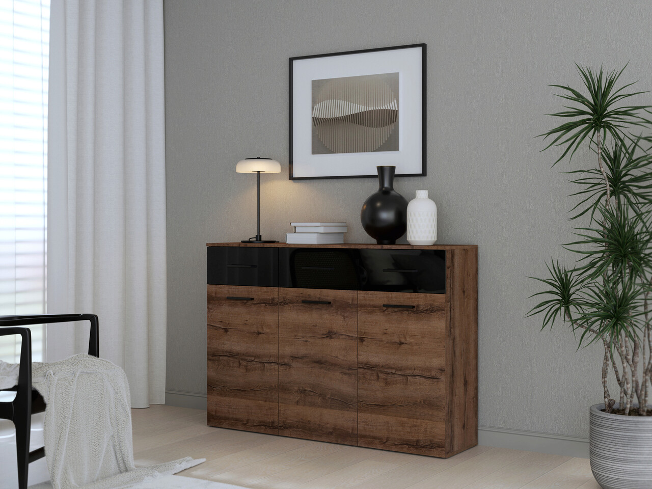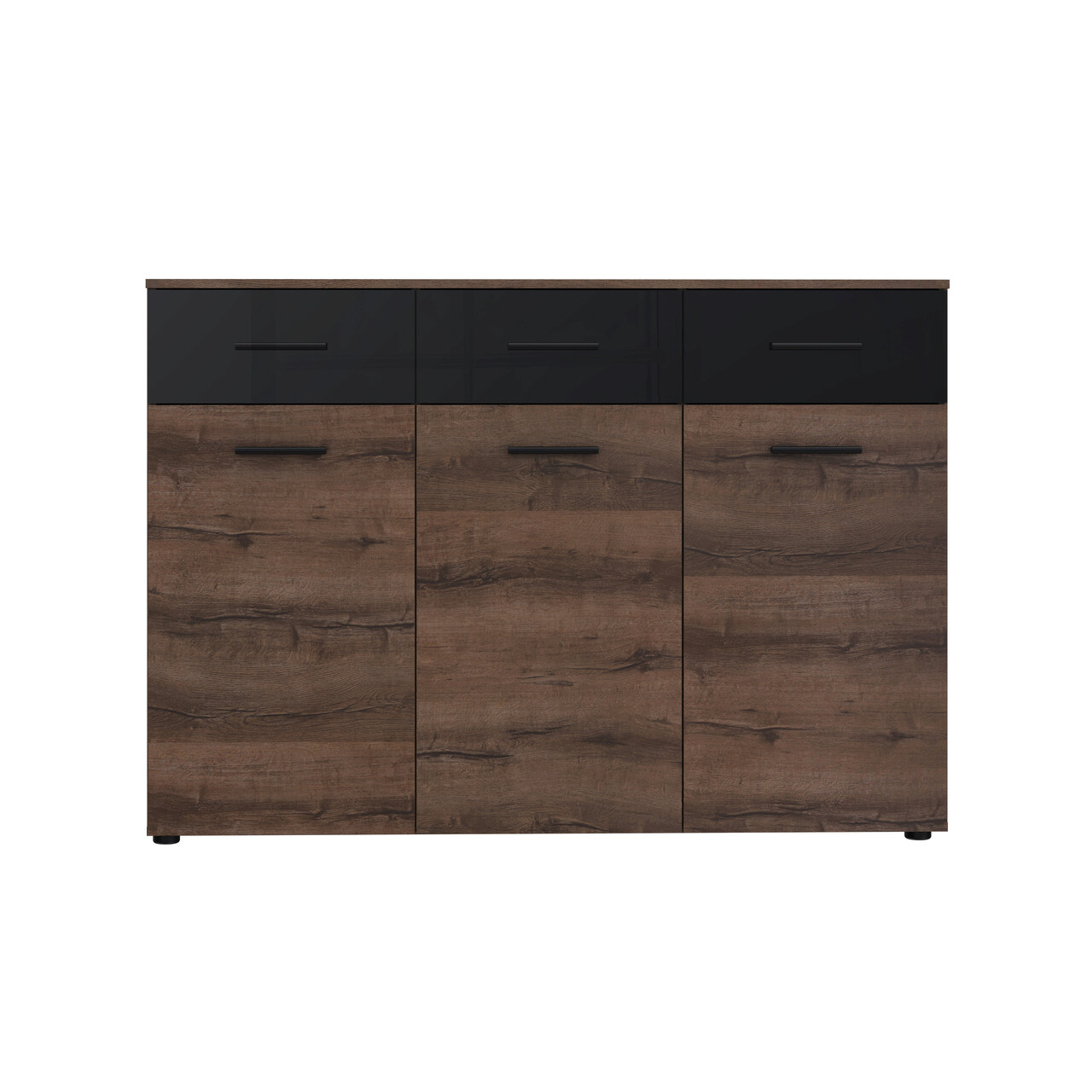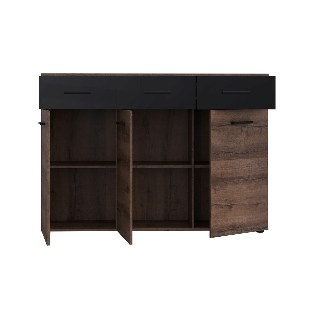 Comoda Krimpen, Bedora, 134.5x34.1x93.5 cm, PAL/plastic, maro/negru lucios