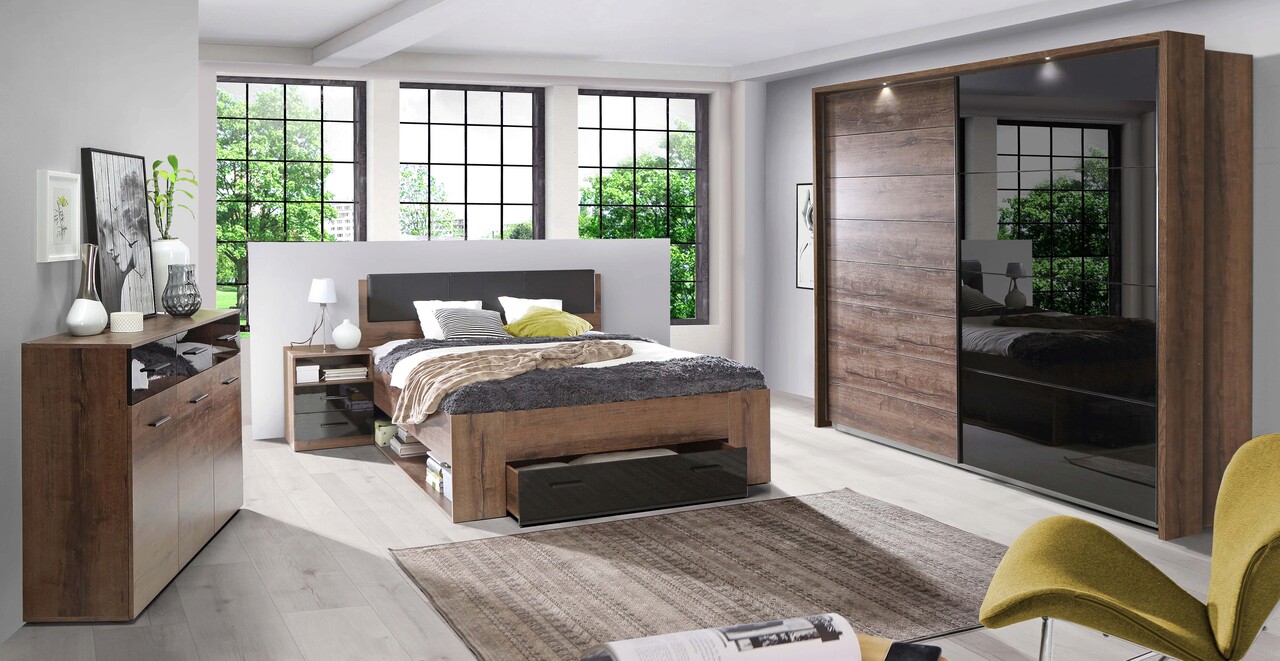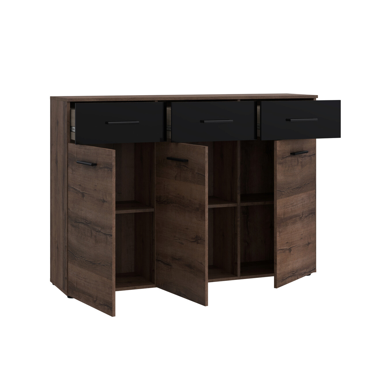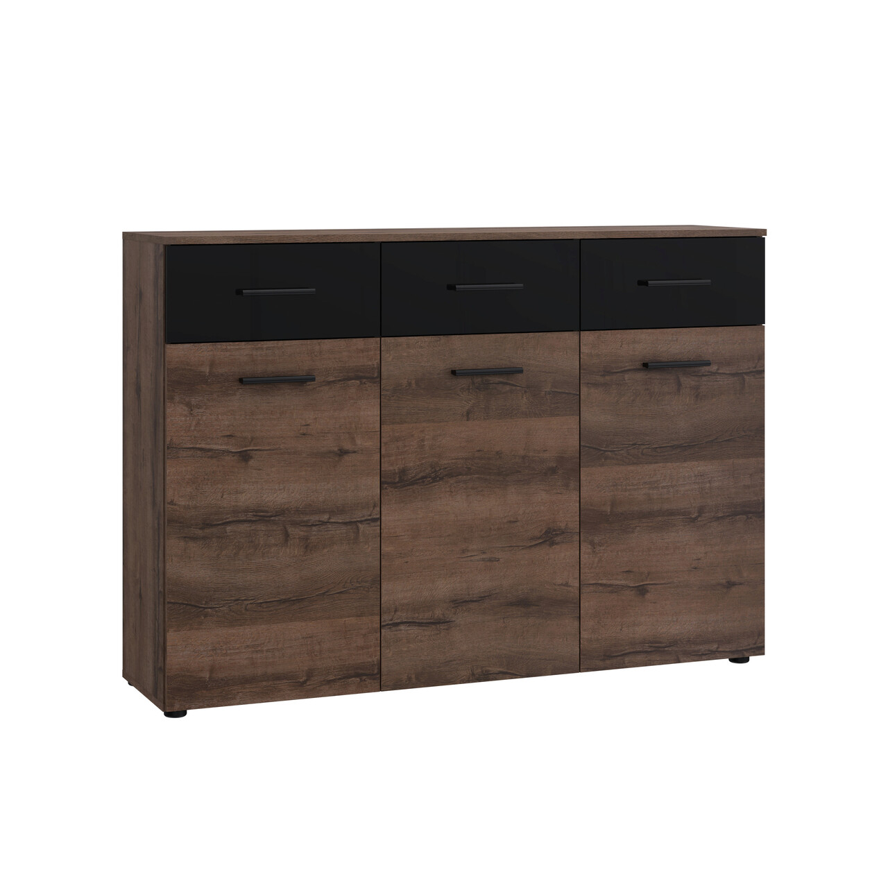 Comoda Krimpen, Bedora, 134.5x34.1x93.5 cm, PAL/plastic, maro/negru lucios