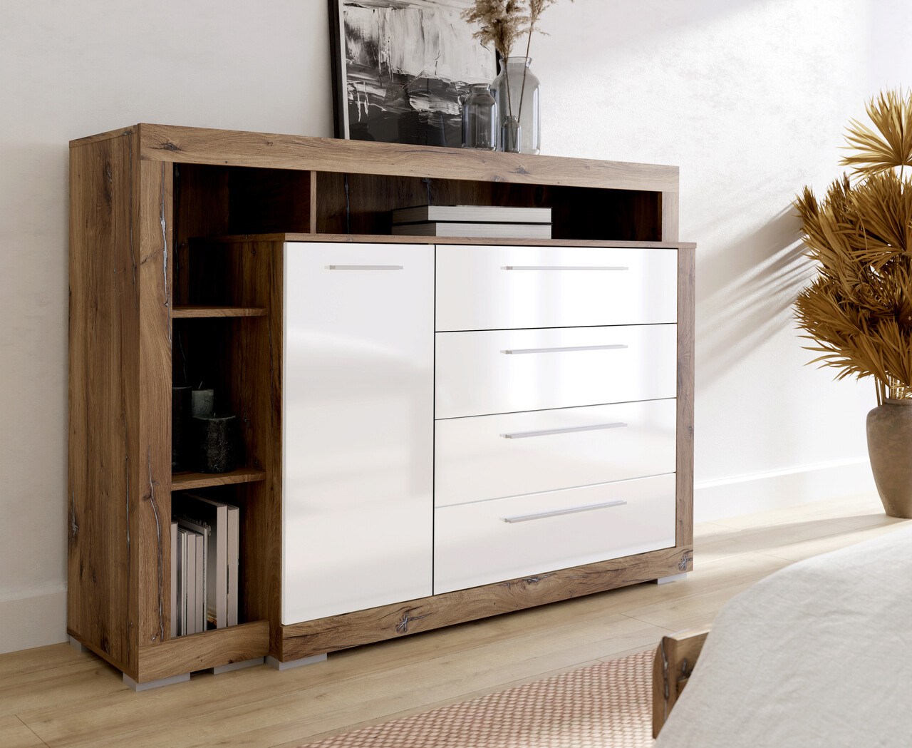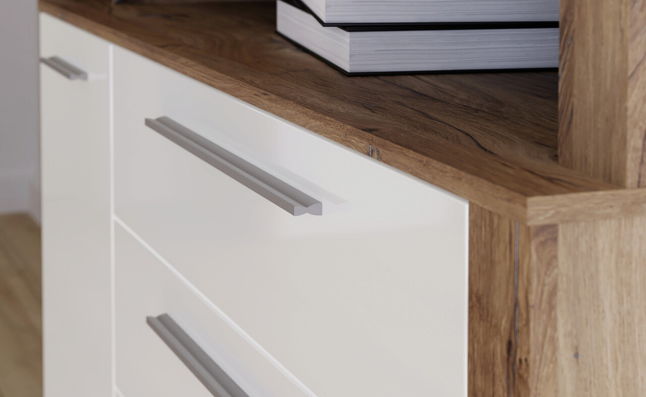 Comoda Leudal, Bedora, 160.6x42.2x108.9 cm, PAL/plastic, stejar/alb lucios